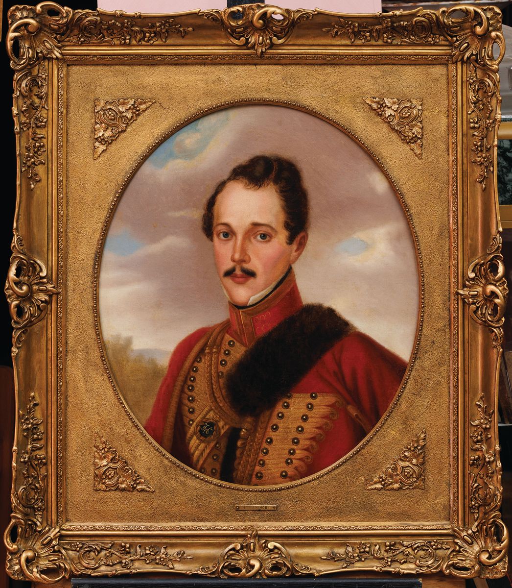 Sportretowany nosi mundur Lejb-Gwardyjski Pułk Huzarów Jego Wysokości , w którym służył do 1832 r.