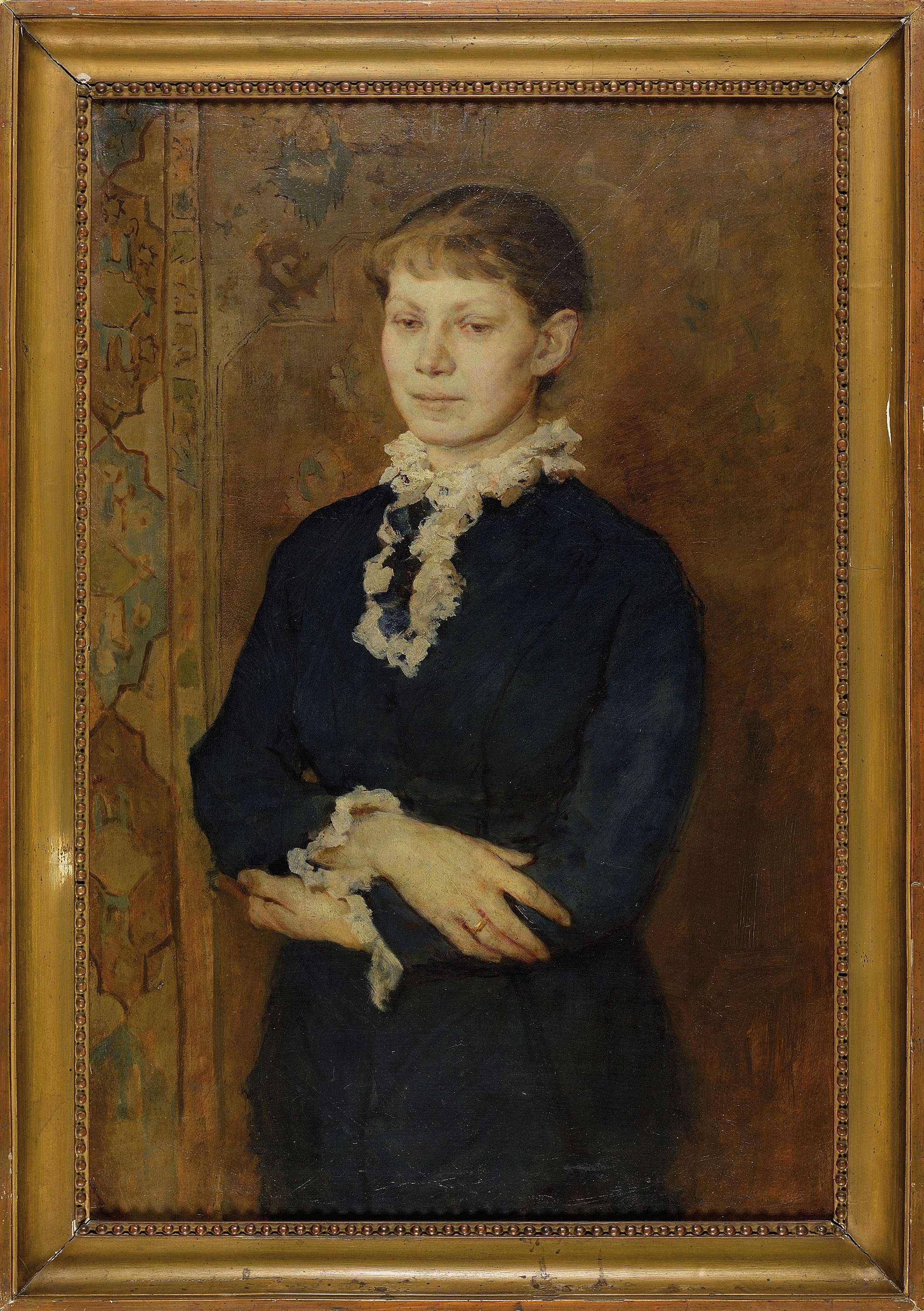 "Portret młodej kobiety jest bez wątpienia dziełem wytrawnego portrecisty, dziełem wysokiej klasy artystycznej o nowatorskim cechach stylistycznych i warsztatowych. Autor skupił się w nim na wnikliwej charakterystyce psychologicznej kobiety, wydobytej pozbawioną pretensjonalności pozą z niewyszukanym, ale pełnym elegancji ułożeniem rąk i wyrazem twarzy. Kobieta emanuje subtelnością i powściągliwością charakteru, łagodnością, ale i smutkiem pozwalającym domyślać się, że przeżywa trudne chwile w swoim życiu. Portret ujmuje kameralnością, intymnością i klimatem bliskości łączącym artystę z modelką. Nie wyczuwa się w nim owego specyficznego napięcia modela towarzyszącego na ogół pozowaniu, wyznaczającego psychiczny dystans między nim i artystą. Jest natomiast szczególny rodzaj spokoju i naturalności w sposobie bycia modelki właściwy dla relacji rodzinnych i przyjacielskich (...). Autorstwo Witolda Pruszkowskiego, moim zdaniem, więcej niż prawdopodobne, należałoby jeszcze potwierdzić badaniami konserwatorskimi. Dzieł Pruszkowskiego pojawia się bardzo niewiele na rynku antykwarycznym. Potwierdzenie autorstwa portretu wzbogaciłoby oeuvre tego znakomitego malarza, pioniera impresjonizmu i symbolizmu w sztuce polskiej (...). Z umiarkowanym prawdopodobieństwem można przyjąć, że obraz przedstawia Stanisławę z Pruszkowskich Matlińską i powstał między 1879 a 1884 rokiem, a może nieco później." - z opinii W. Milewskiej.