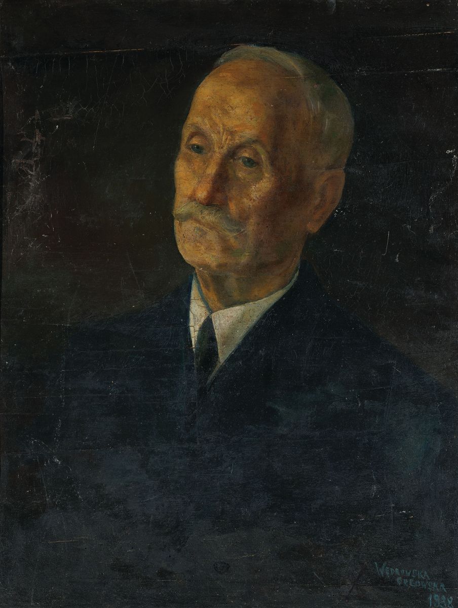 Na odwrocie: Portret Wacława Wędrowskiego znanego w Polsce budowniczego kościołów w latach 1885-1935 malowany przez córkę Marię Wędrowską-Orłowską w 1938 r