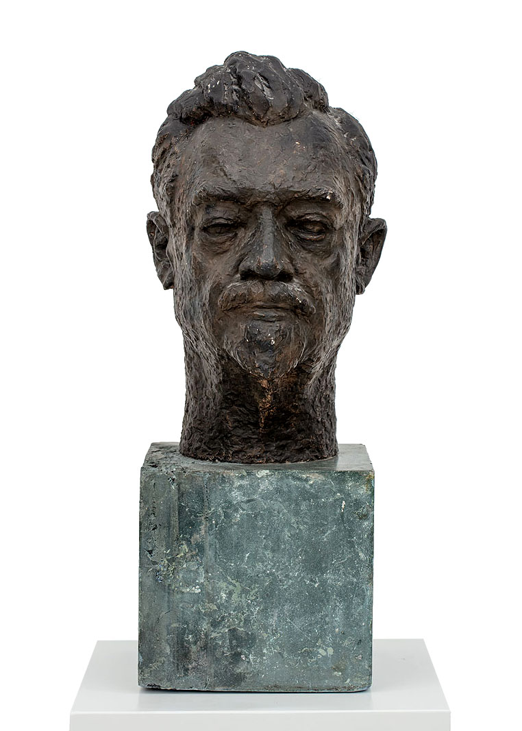 gips brązowiony, podstawa kamienna, wys. 47 cm (z podstawą 71 cm)sygn. u dołu: H. Kuna