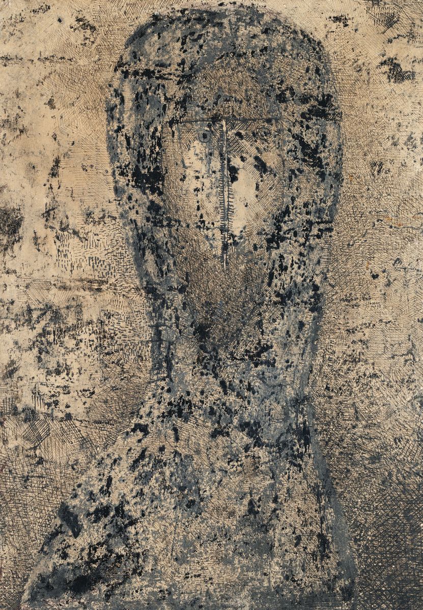 Technika własna, papier naklejony na tekturę; 69 x 49 cm
