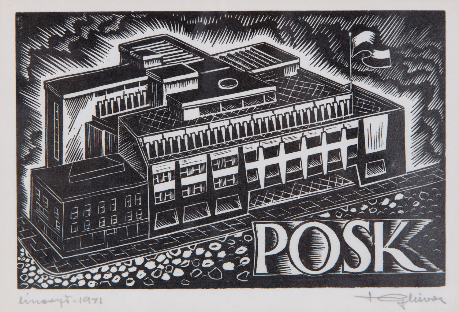 linoryt/papier, 9,2 x 14,3 cm (zadruk)sygnowany ołówkiem p.d.: 'St. Gliwa', opisany i datowany l.d.: 'linoryt 1971'
