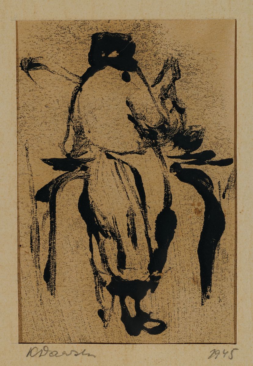 Tusz, papier; 10 x 7 cm (w świetle p-p)Sygnowany ołówkiem na p.p.:KDawski 1945