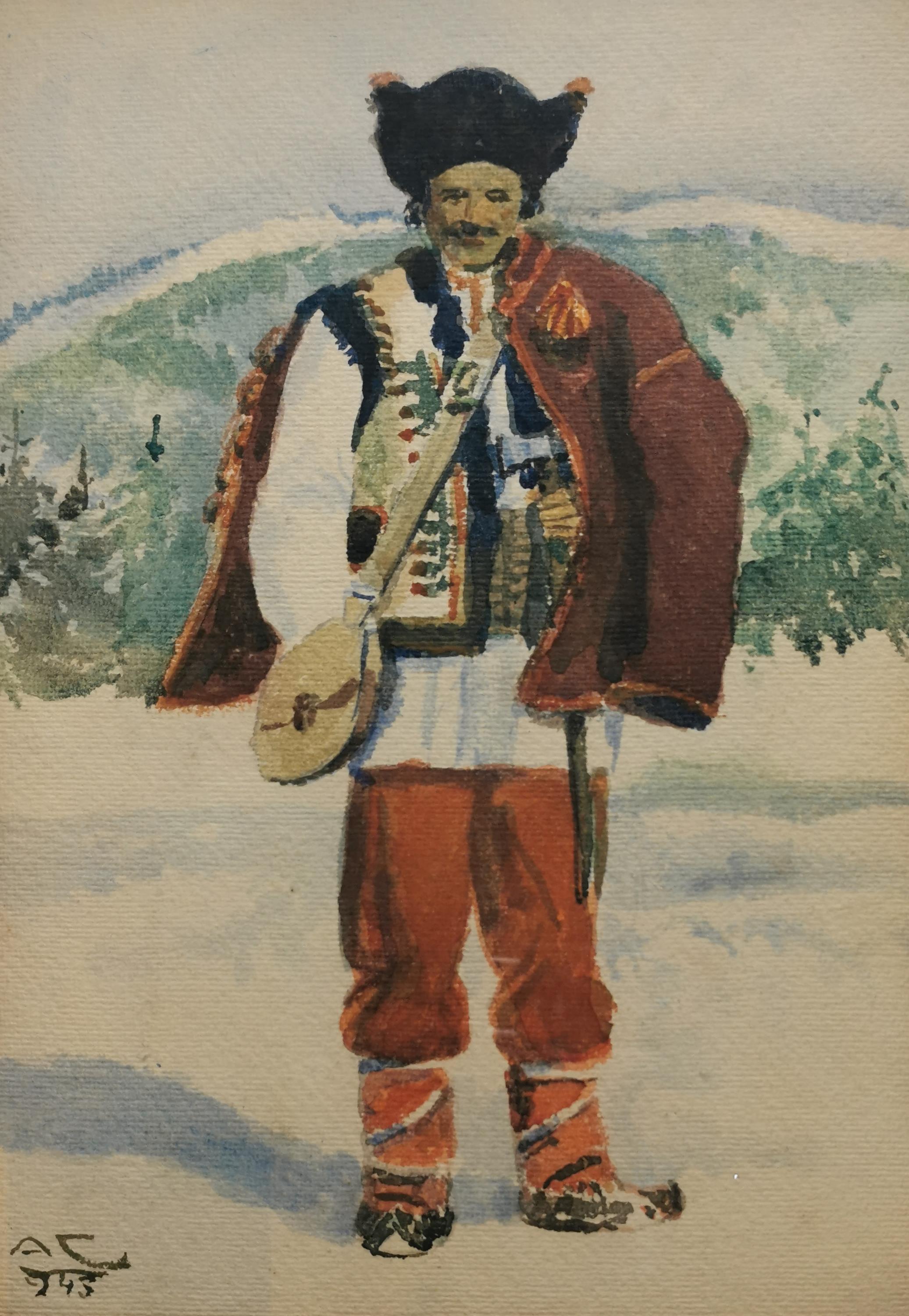 na odwrocie napis: Hucuł / Malował Antoni de Freyselsfeld / Chitry ppłk / 1943 (? - słabo czytelnie, piórem).