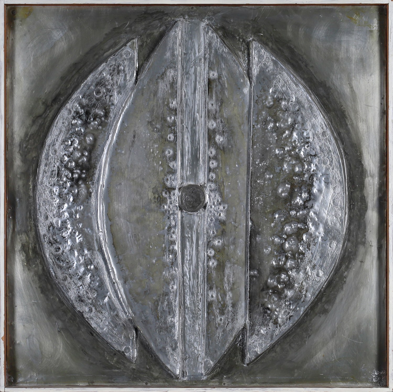 technika własna, aluminium, relief ; 50 x 50 cm;sygn. i opisany na odwrocie: BOHDAN-BO ZAŁĘSKI / 1971 / "EGZOTISKT MONSTER" / 50 x 50 CM / RELIEF. ALUMINIUM