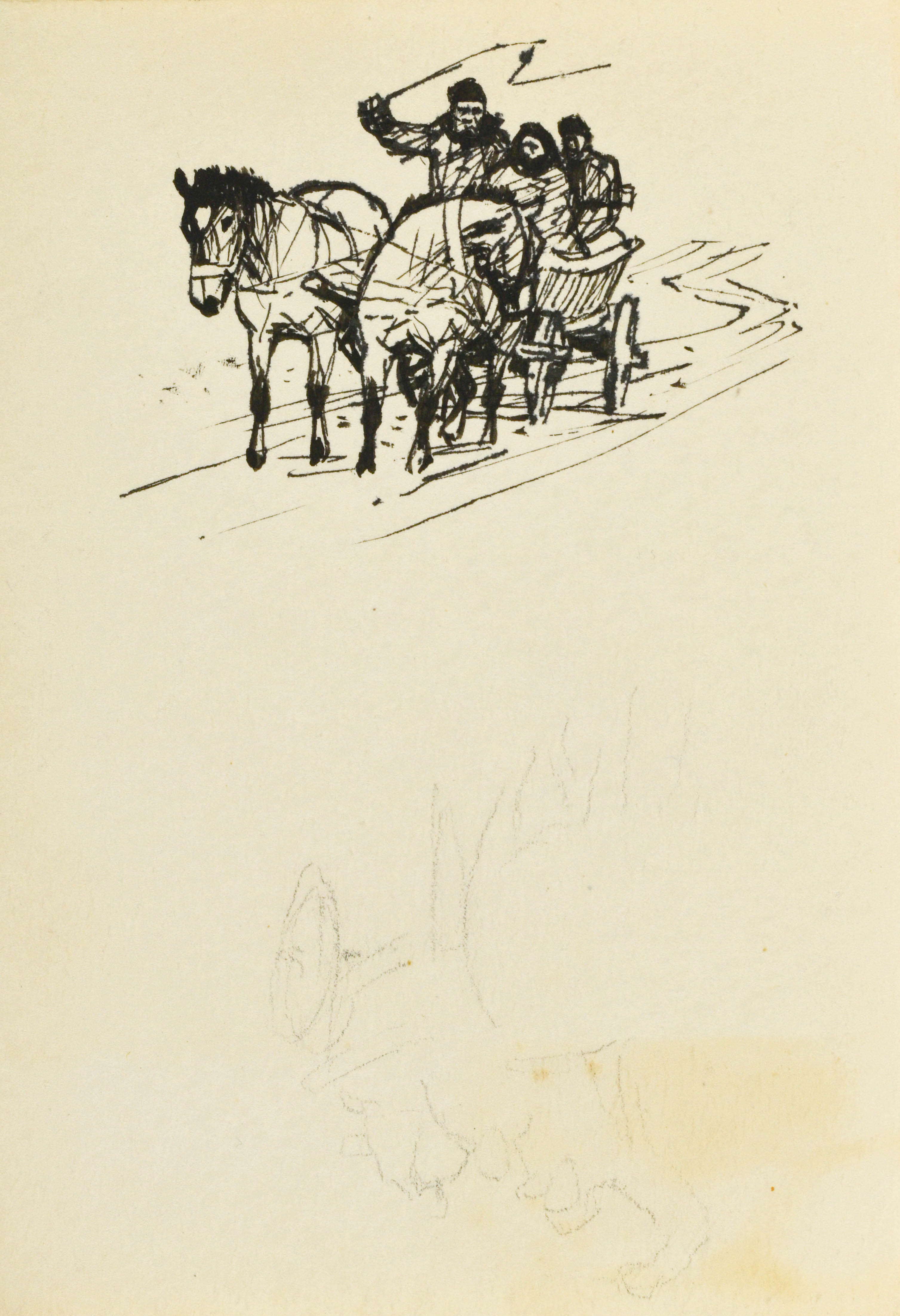 piórko, tusz, papier; 14,8 x 10,4 cm.