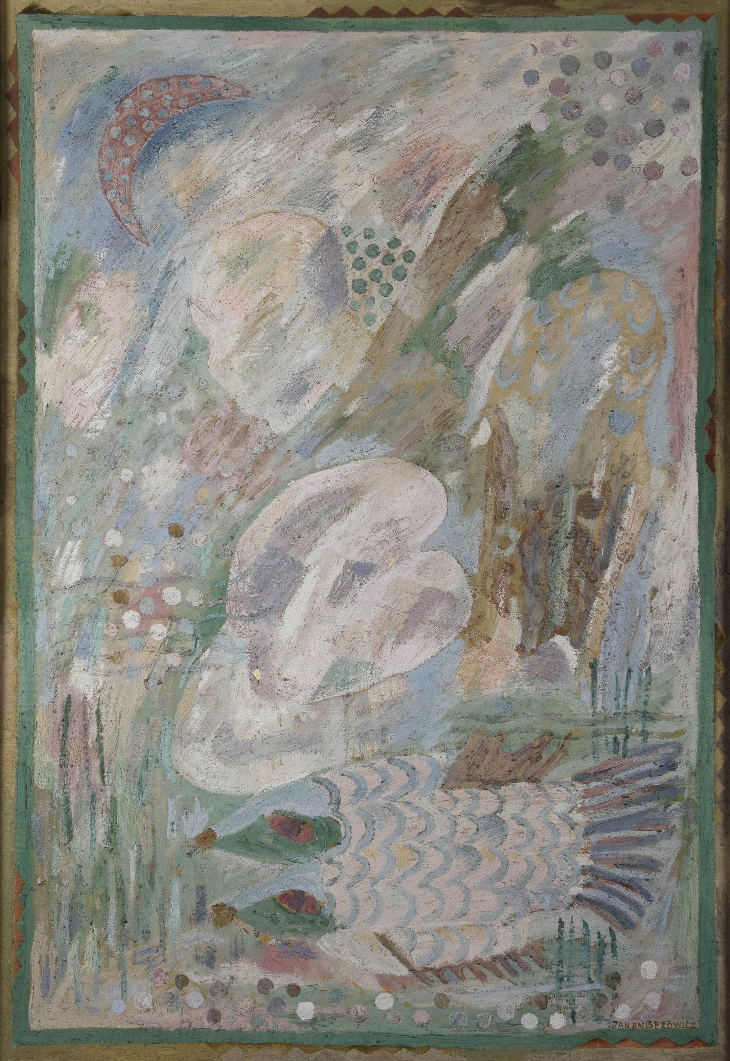olej, płótno; 105 x 73 cmsygn. p. d.: JAN ANISEROWICZ.opisany na odwrocie, na blejtramie: Powstawanie życia 1974 r.