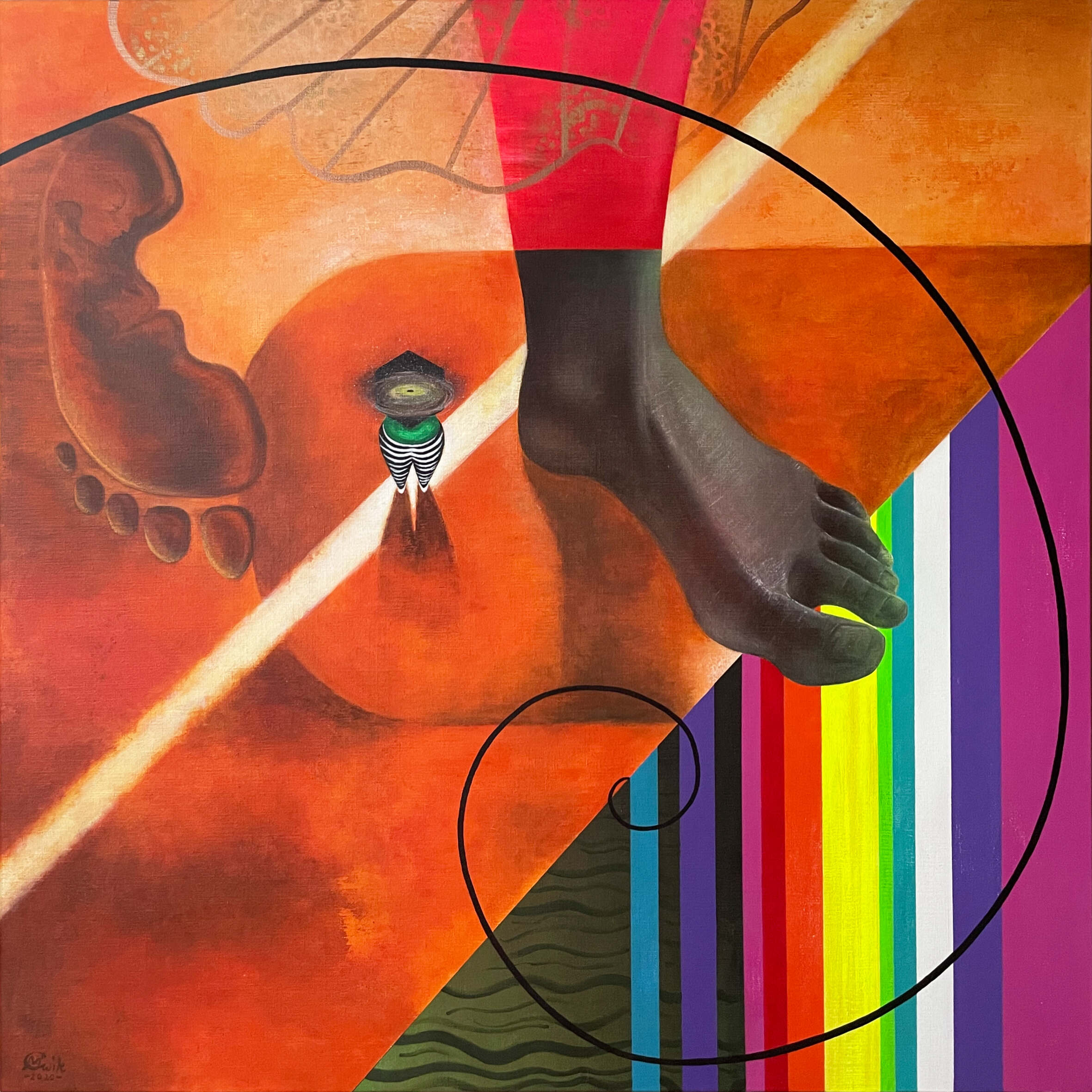 Akryl, płótno, 120 x 120 cm, sygnowany i datowany l.d.: M. Cwik 2020