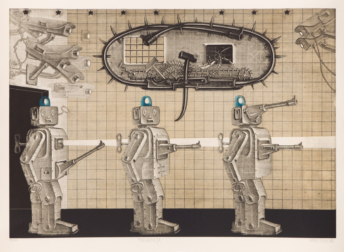 technika mieszana (akwaforta, mezzotinta, sucha igła), papier, kompozycja: 69,5 x 99 cm, arkusz: 79 x 107 cm, 19/100,