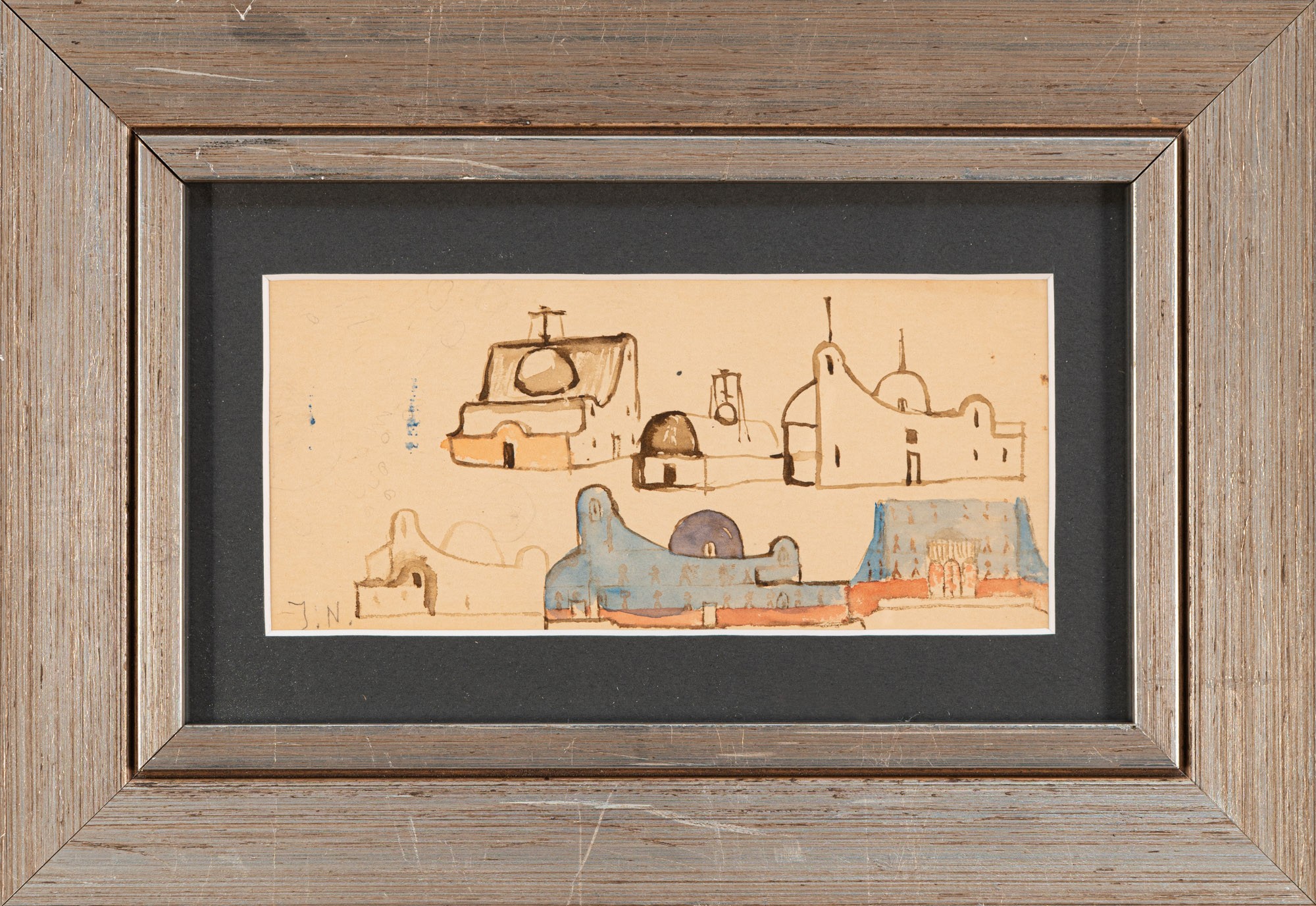 akwarela, papier; 8 x 17,5 cm;sygn. l. d.: J. N. (ołówkiem)na odwrocie rysunek