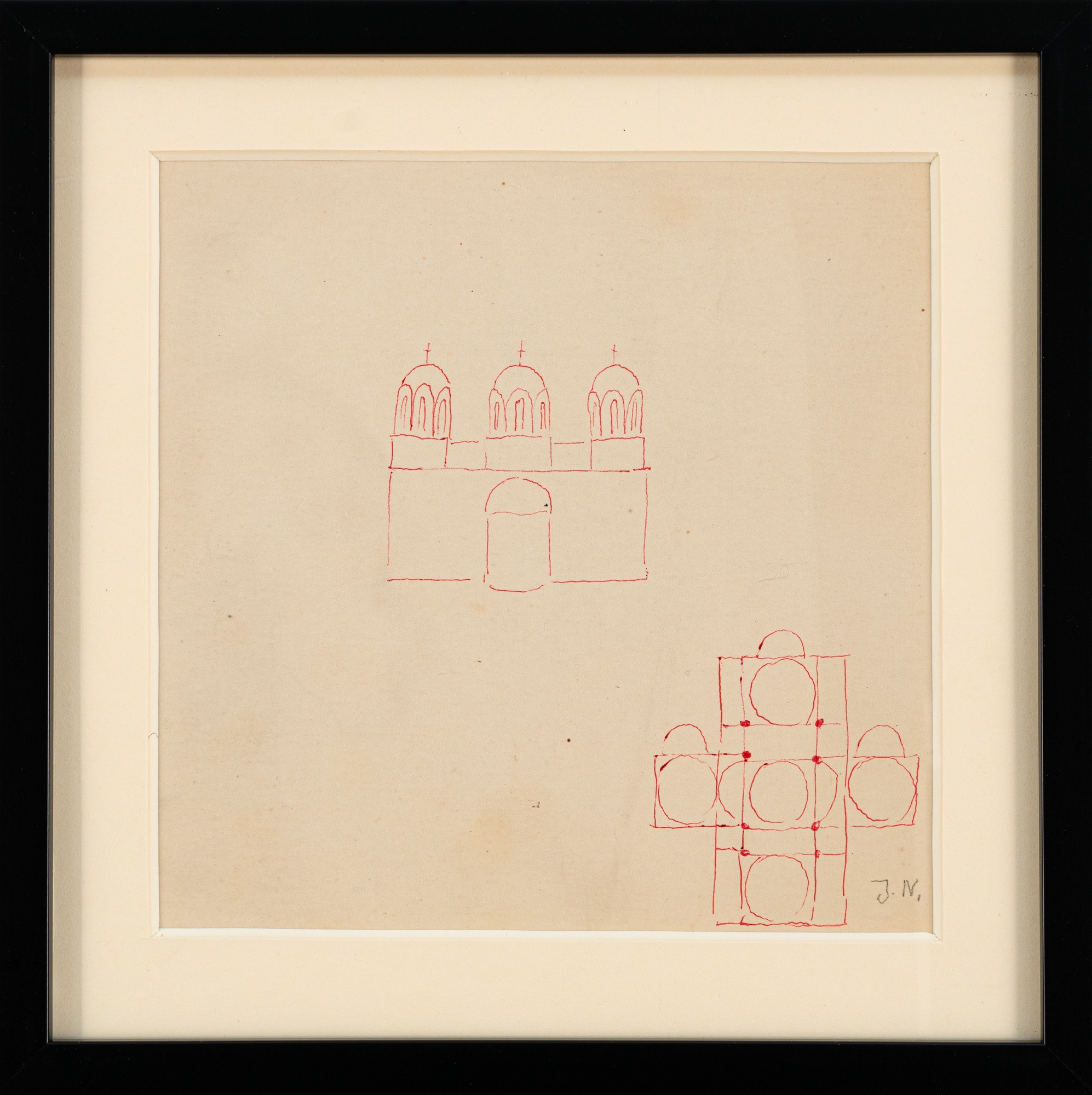 długopis, papier; 16,5 x 16,5 cm;sygn. p. d.: J. N. (ołówkiem)