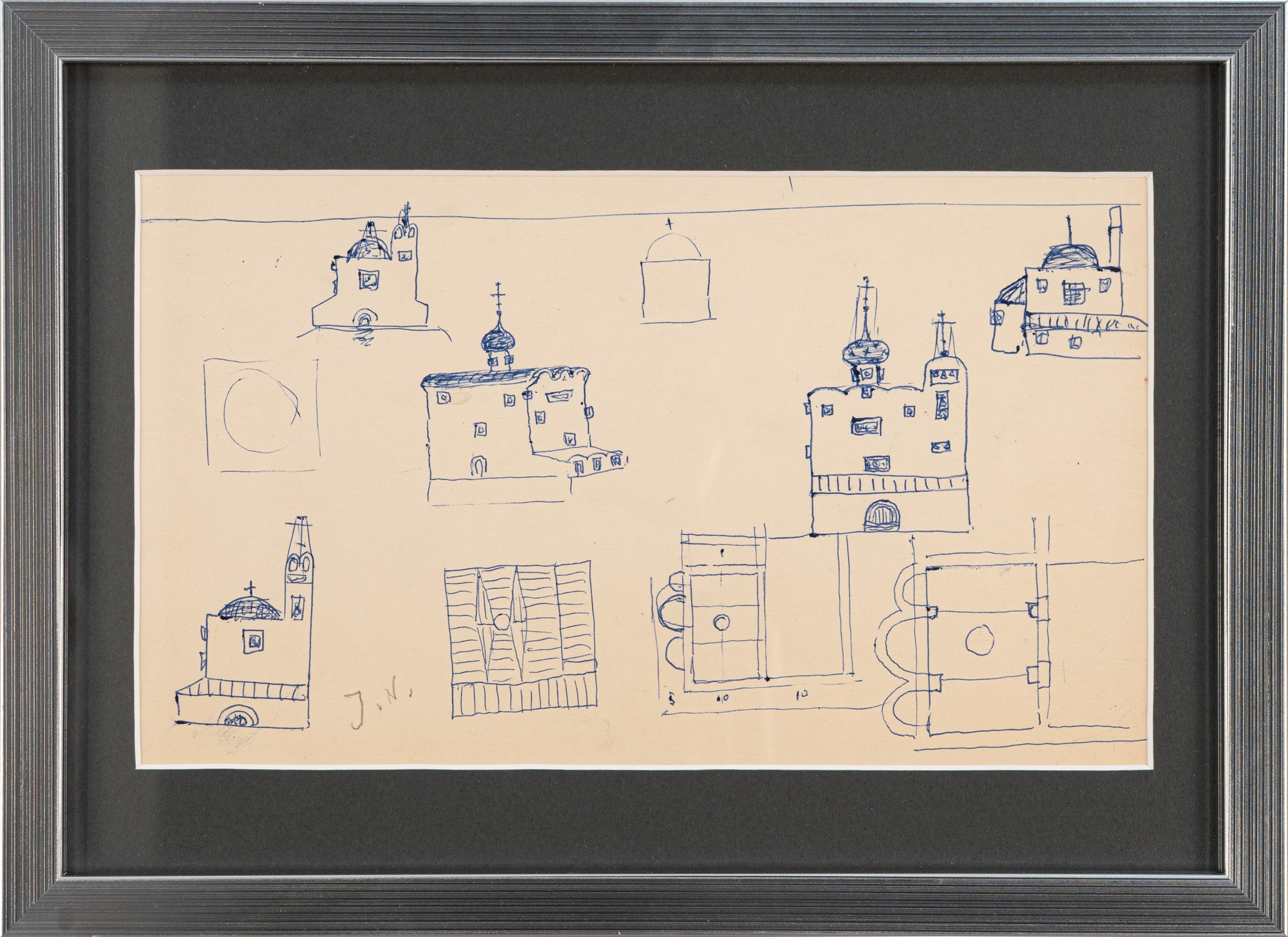 długopis, papier; 15 x 25,5 cm;sygn. l. d.: J. N. (ołówkiem)na odwrocie szkice