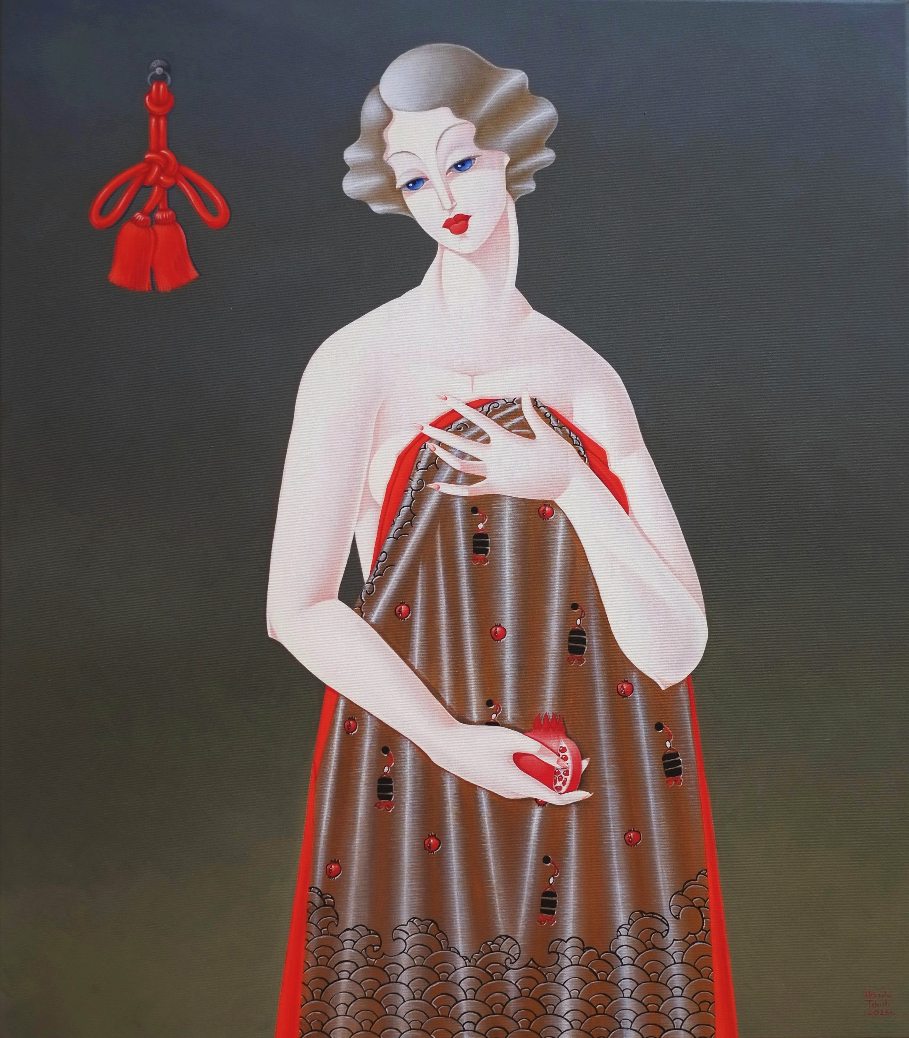 olej, płótno, 80 x 70 cm,sygnowany p.d. oraz opisany na odwrocie: "'Proserpina"2025r., Urszula Tekieli, nr. kat.: 506/11/25'