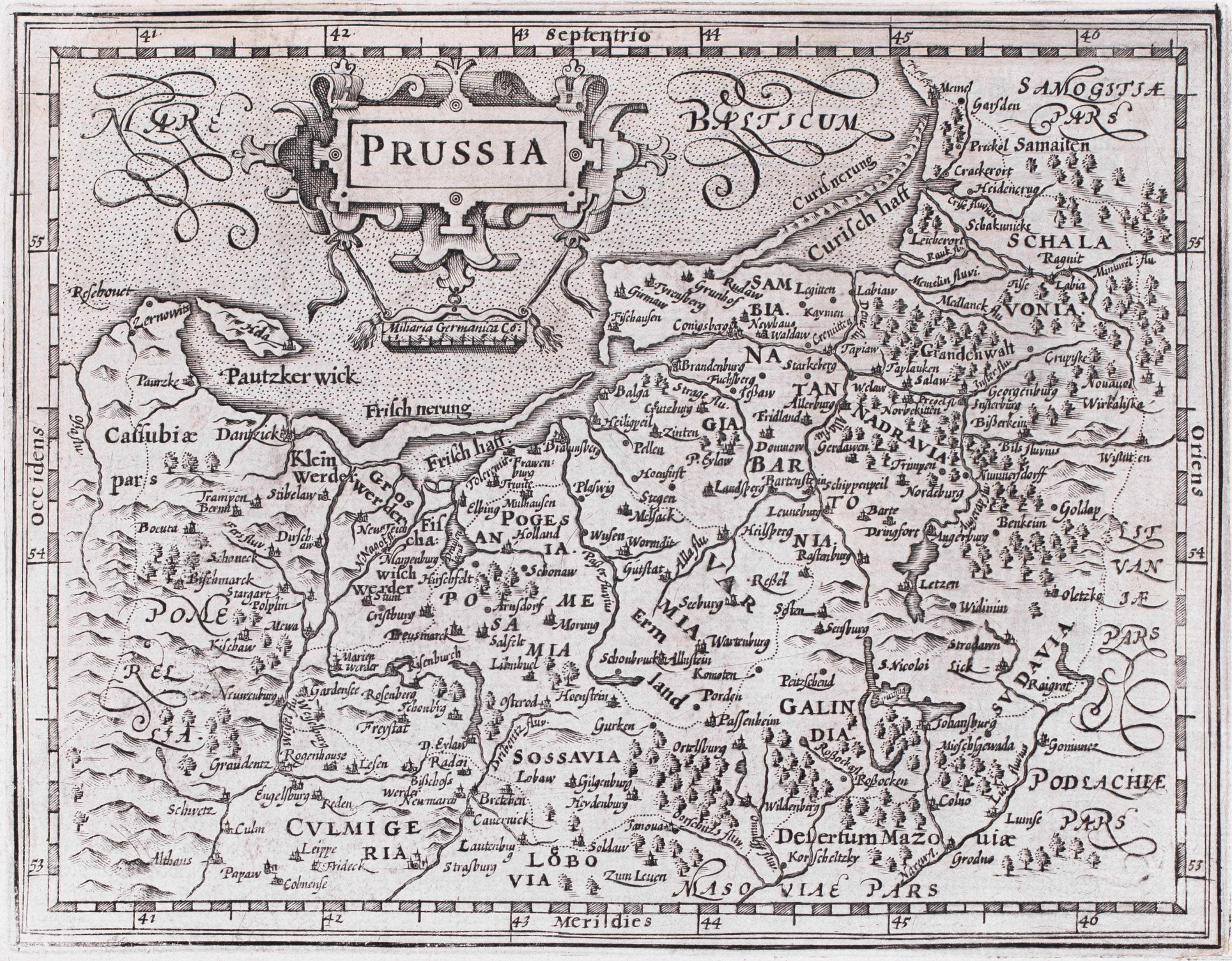 Mapa Prus pochodząca z „Atlas Minor“, wyd. Judocus Hondius, Cornelis Claesz, Amsterdam, 1609miedzioryt, 15,6 × 19,8 cm (odcisk płyty)stan zachowania bardzo dobry