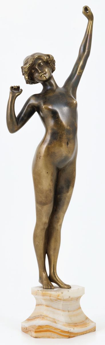 Brąz, wys. 34,5 cm, podstawa marmur, wys. cłk. 40 cm