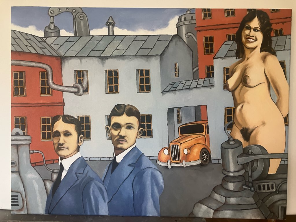 olej/płótno, 60 x 80 cmopis, sygnatura, datowanie na odwrociu: Robert Gebethner, 2025 r., Tyt.- ,,Przedwojenni Inżynierowie", olej - 60 x 80