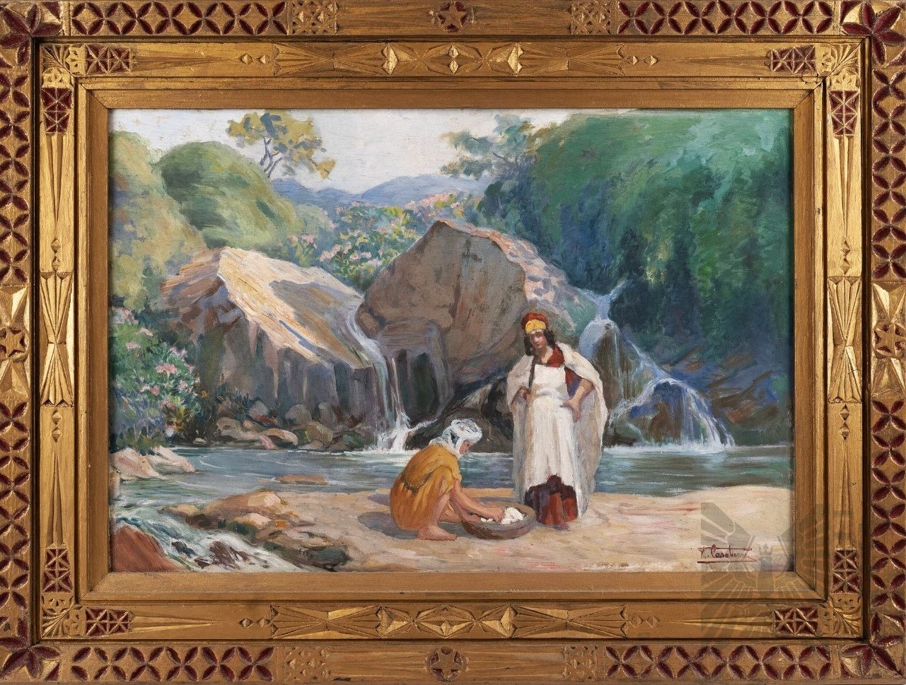 Olej na płycie drewnianej, 50 x 72 cm w podwójnej, ręcznie rzeźbionej ramie o wym. 72 x 93 cm;