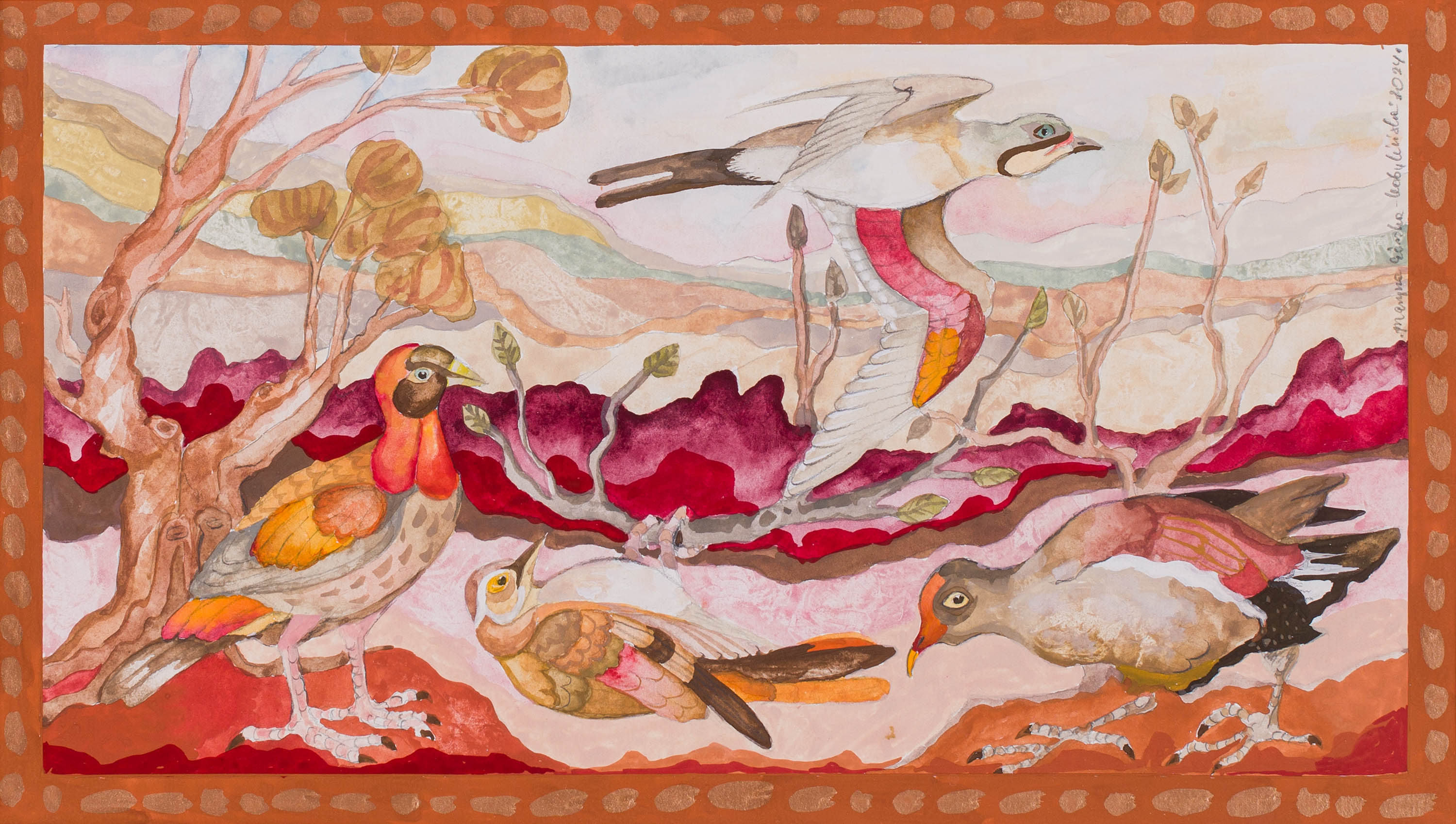 akwarela, gwasz, papier, wym. 22,5 x 40 cm w świetle passe-partoutsygn. i dat. p. g.: Maryna Górska-Kobylińska 2024