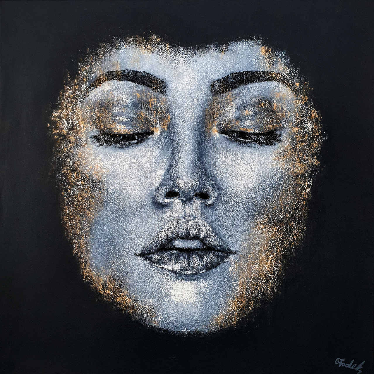 akryl, złoto, płótno, 100x100 cm