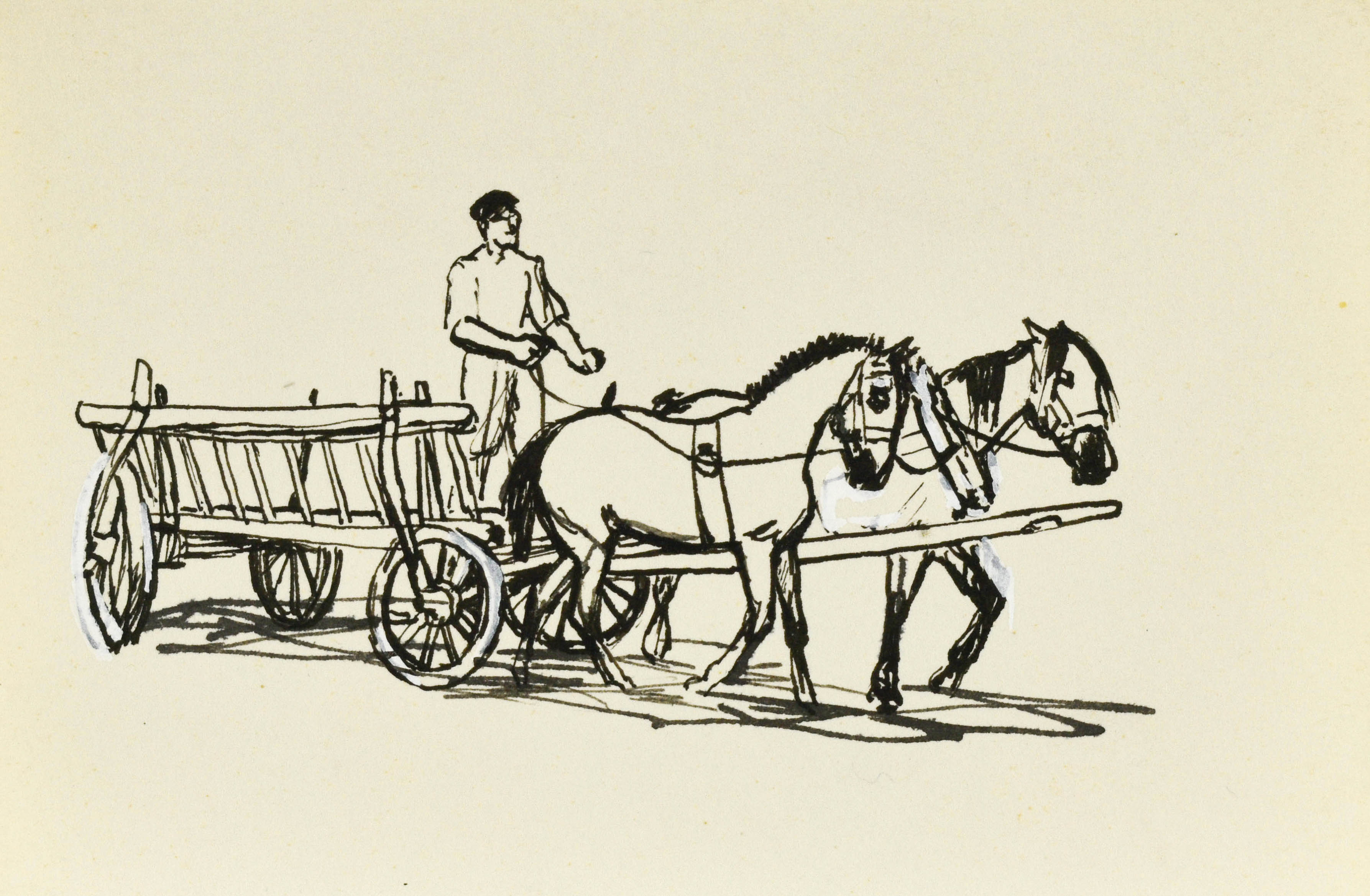 piórko, tusz, gwasz, papier; 9,7 x 14,7 cm.
