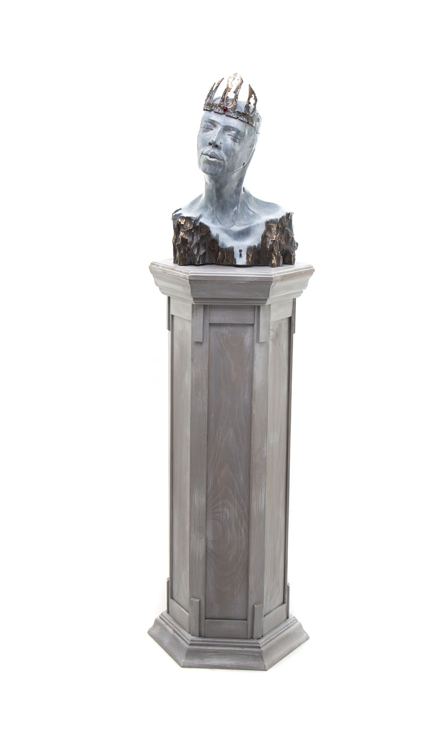 brąz patynowany, drewno,46,5 x 27,5 x 15 cmpostument: 100 x 42 x 37 cmsygnowany, datowany i opisany: 'Szołdra A | Regina EA I/IV | 2021'edycja: 1/4