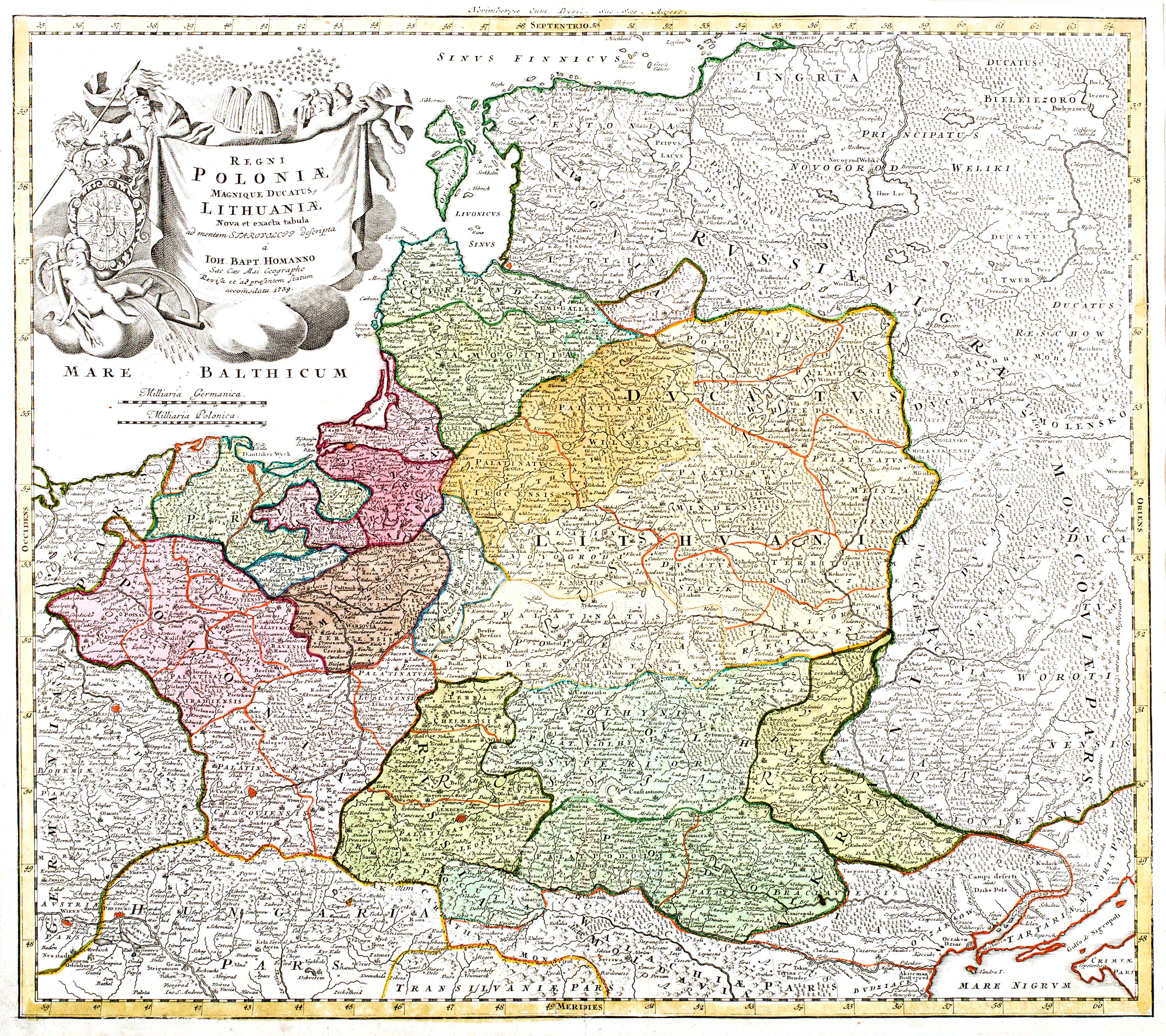 Mapa ziem Rzeczpospolitej po 1715, stan piąty z drugiej płyty, wyd. Spadkobiercy Homanna, Norymberga 1739