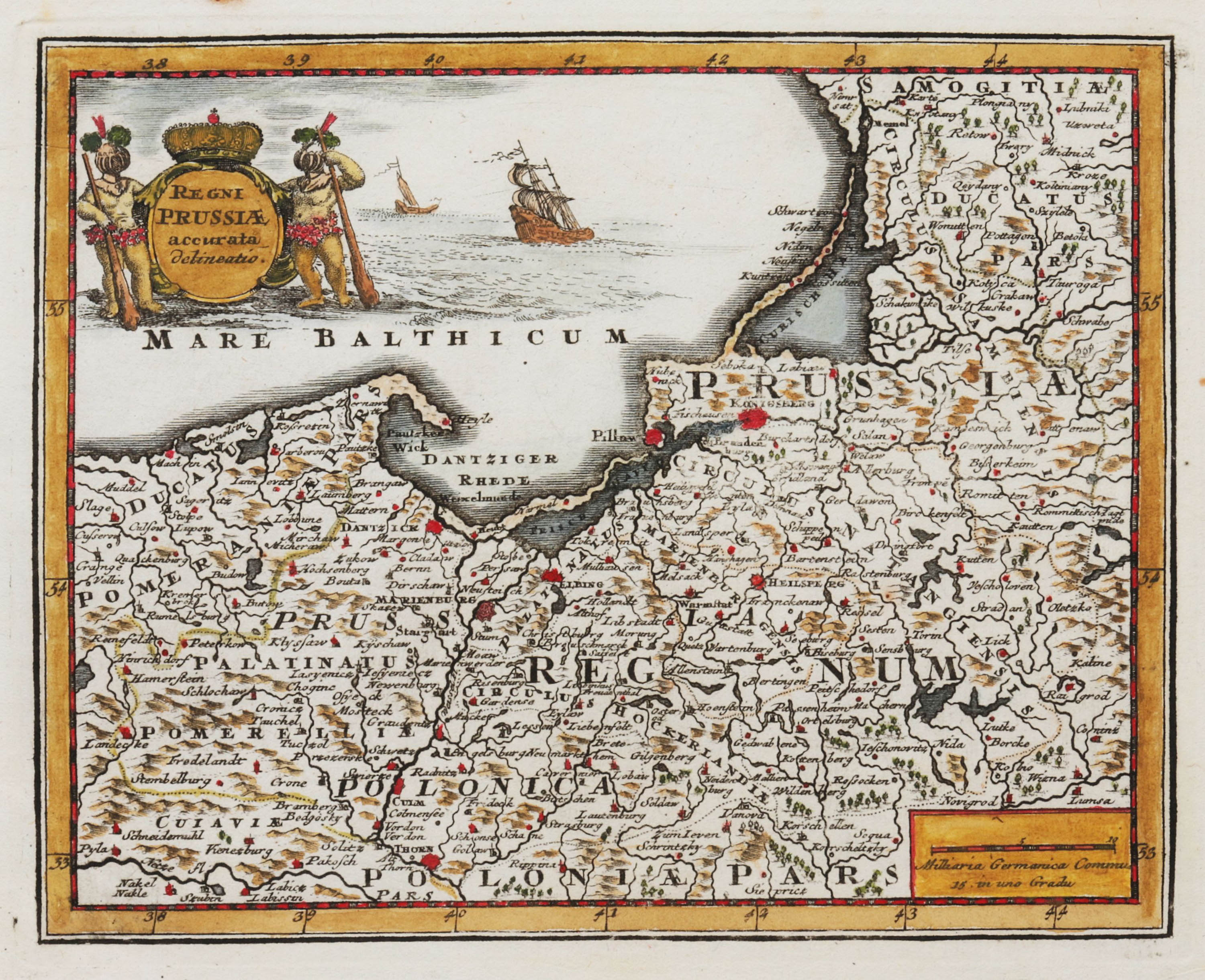 Mapa Prus pochodząca z “Tabulae Geographicae ...”, Würzburg, 1739miedzioryt kolorowany, 15 x 18,7 cm (odcisk płyty)stan zachowania bardzo dobry, na marginesie plamka rdzy