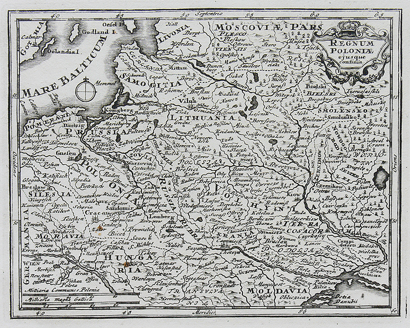 Mapa ziem Rzeczpospolitej pochodząca z dzieła „Tabulae Geographicae ...”, Würzburg 1739miedzioryt, 14,2 x 17,9 cm (odcisk płyty)