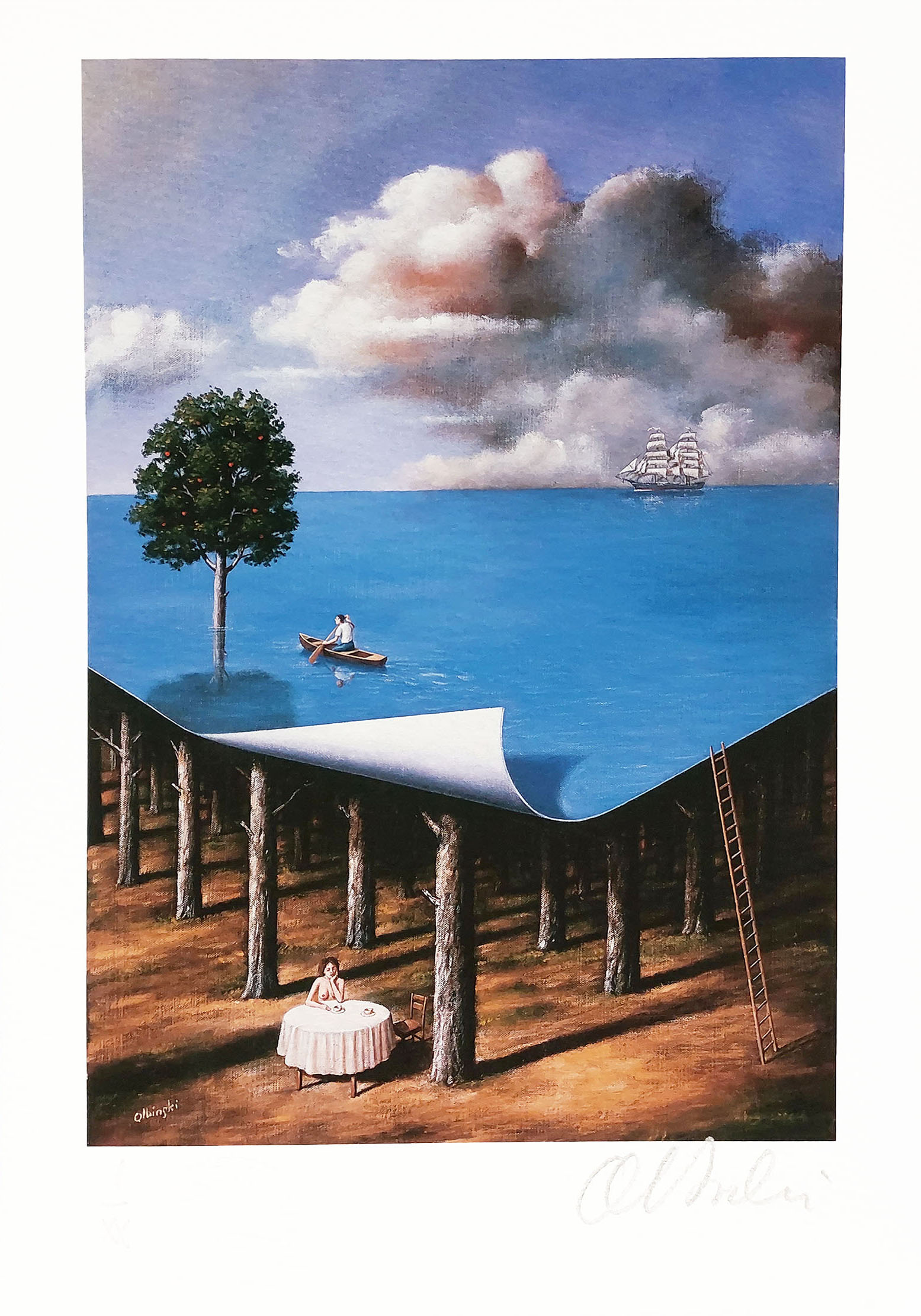 l.d.: sucha pieczęć artysty (tłoczony napis) - Olbiński