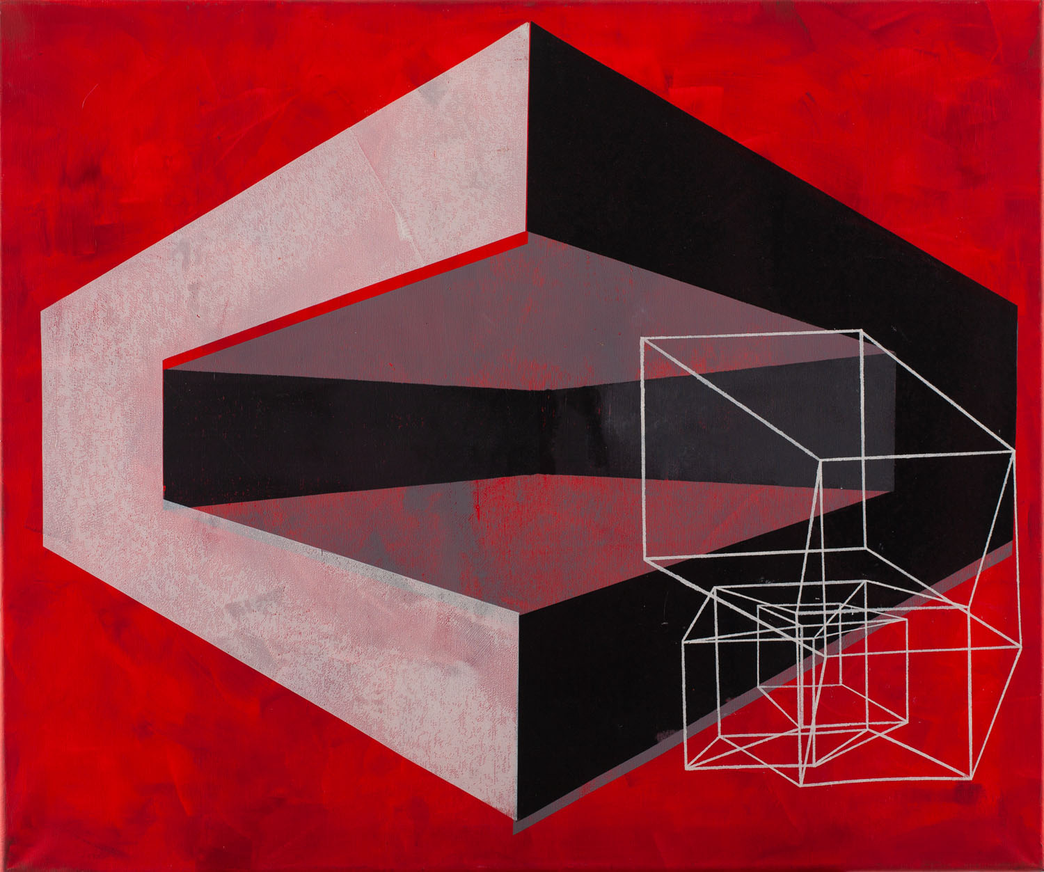 akryl/płótno, 75 x 90 cmsygnowany, datowany i opisany na odwrociu: 'Dębińska | 2018-19 | RELACJE IV | serigrafia - malarstwo'