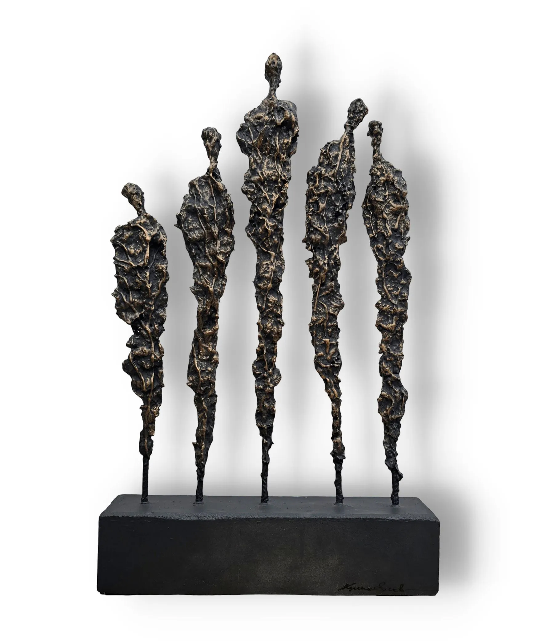 metal, glina, beton, wysokość: 58 cm (w tym podstawa), szerokość 35 cm