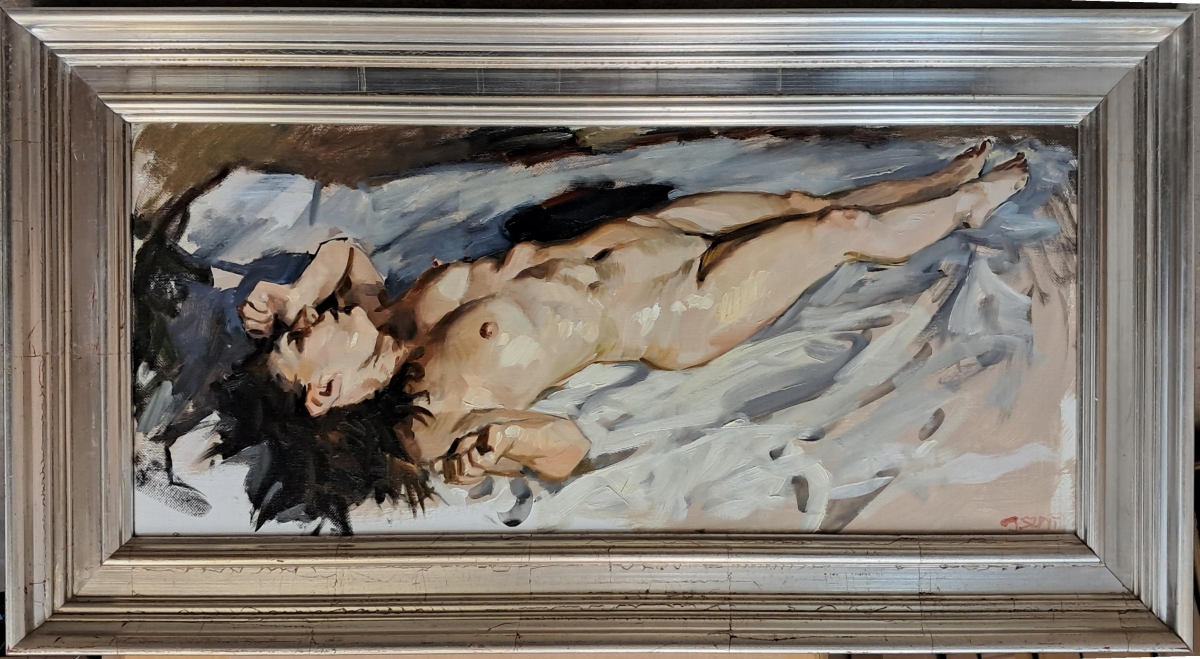olej, płótno, 30 x 70 cm, w oprawie: 47 x 87 cm,