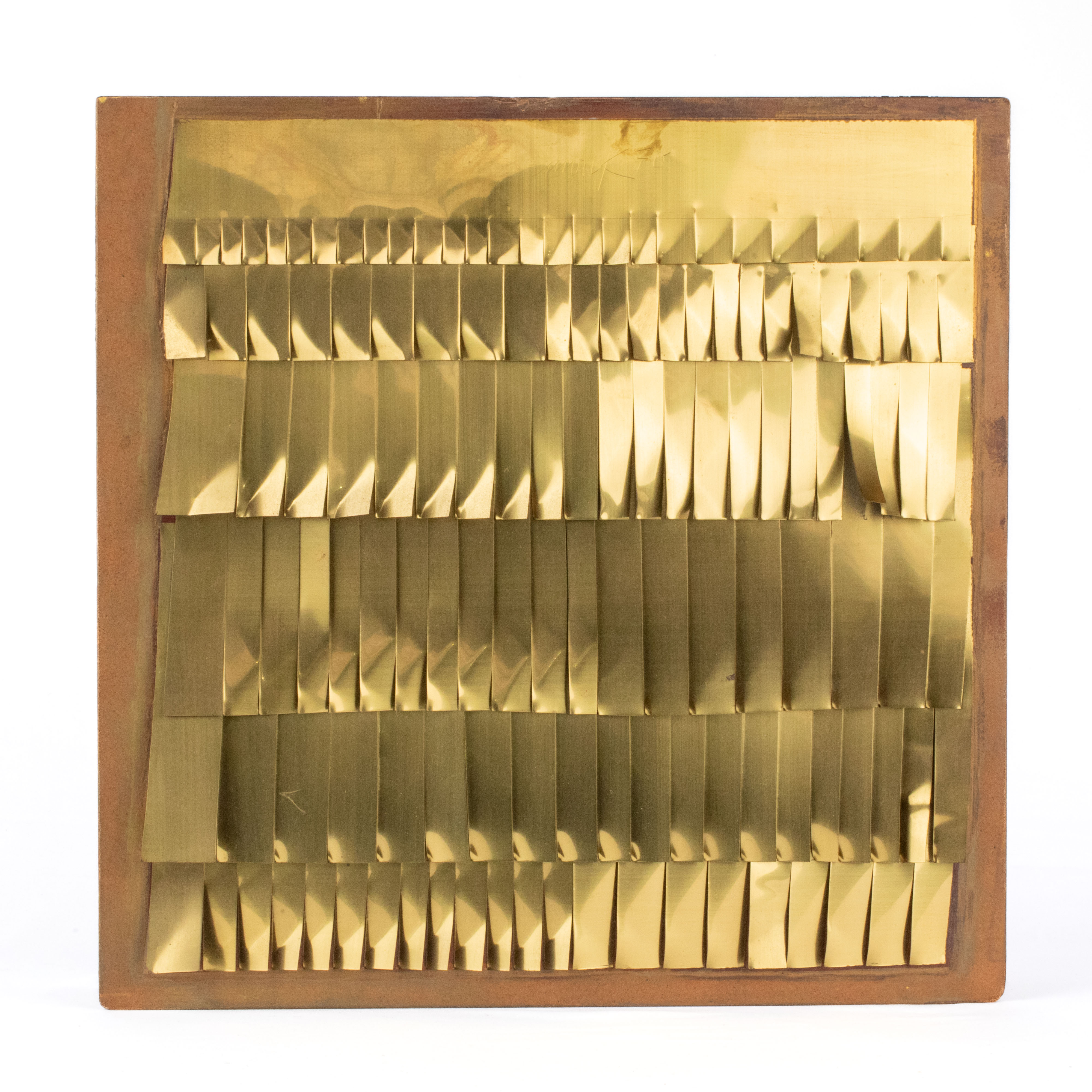 Charakterystyczna praca z eksperymentalnej techniki reliefowej Macka, w której rytmicznie ułożone metalowe lamele tworzą zmieniającą się grę światła i cienia; pochodzenie: kolekcja prywatna w Düsseldorfie