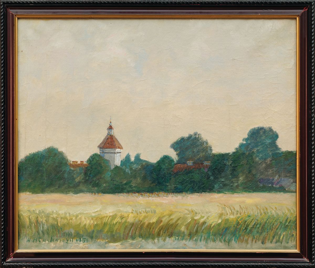 Olej, płótno; 48 x 58 cmSygnowany l.d.: H. Błachnio VII 1951Na odwrocie: „Rogów” 1951 r. A.S.P. / form. 48/57,5 cm. / Henryk Błachnio; Rogów VII 1951 / plener ASP