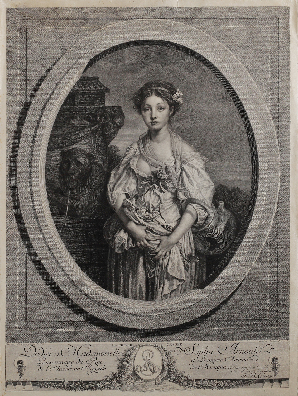 Znana grafika wielokrotnie wydawana w reprintach do dziś. Autor obrazu to słynny malarz nadworny króla Francji. Rytownik to Jean Massard (1740-1822). Egzemplarze tej grafiki posiadają m.in. Luwr w Paryżu, British Museum, Narodowa Galeria Szkocji. Dedykacja poświęcona słynnej śpiewaczce Sophie Arnould, wspieranej przez rodzinę królewską i Madame de Pompadour.