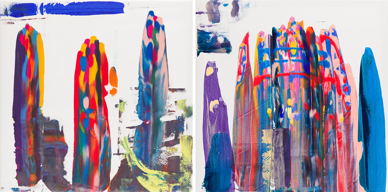 akryl/płótno, 97 x 194 cm (całość) sygnowany, datowany i opisany na odwrociu: 'DOMINIK SMOLIK | "ROZSZCZEPIENIE ŚWIATŁA" | DYPTYK SKRZYDŁO (A/B) | 97 x 97 CM AKRYL/PŁÓTNO | KRAKÓW MMXVIII | Dominik Smolik'