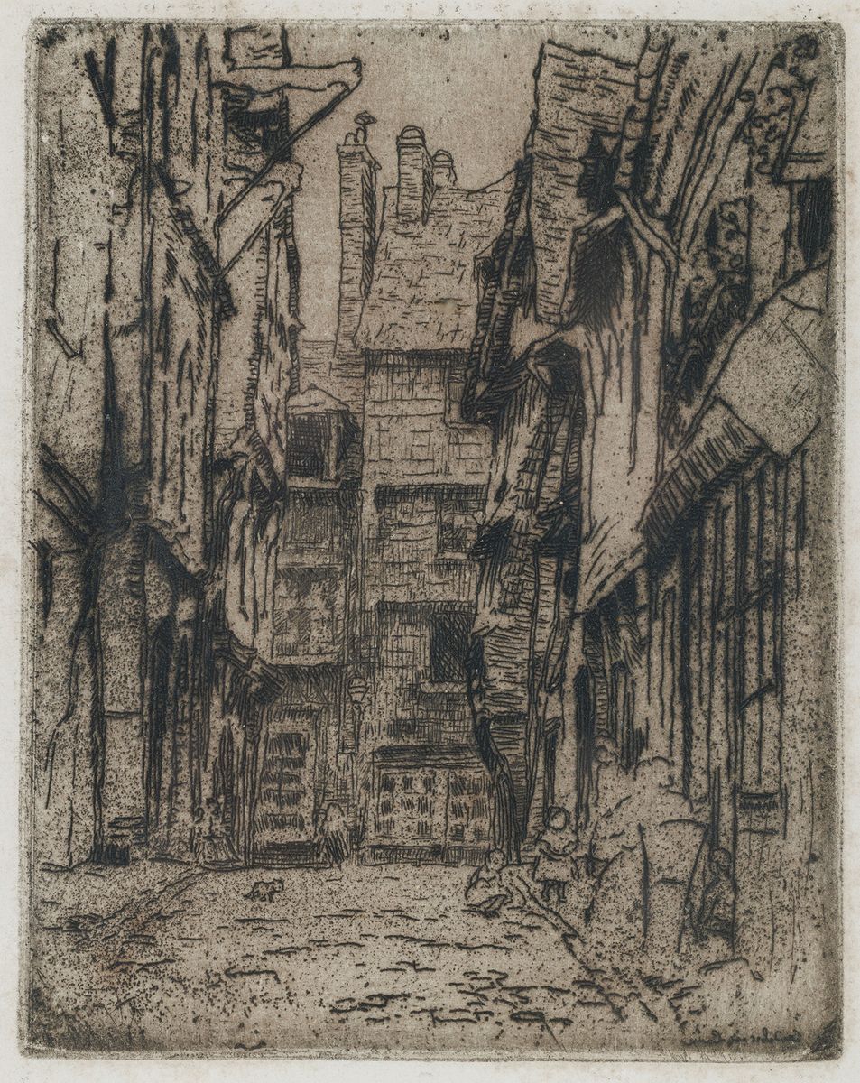 Akwaforta, papier; 13,7 x 10,9 cm (kompozycja)p.d.: Caudebec en caux (lustrzanie)Oprawiona