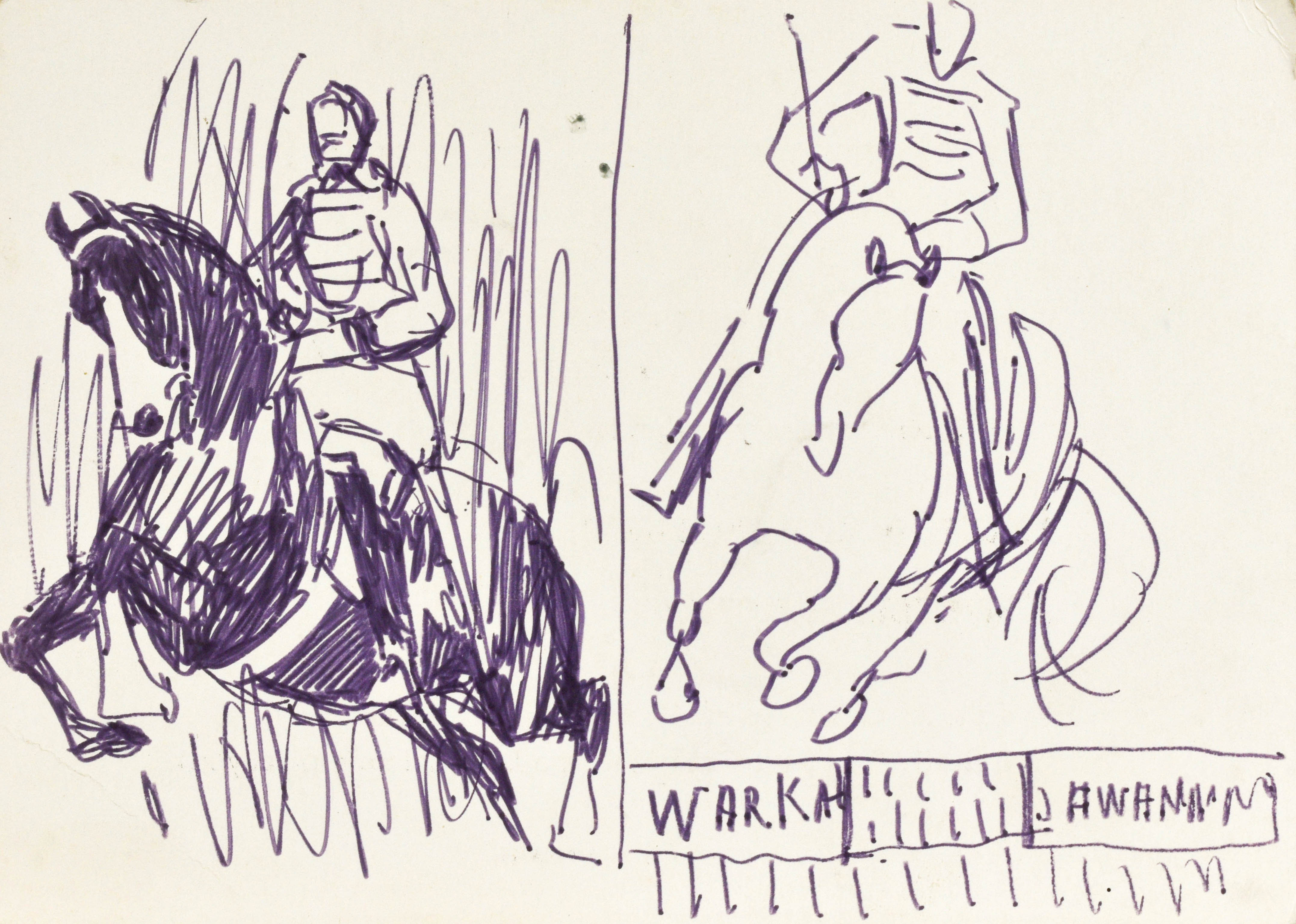 flamaster, brystol; 10,6 x 15 cm.Rysunek wykonany na odwrociu zaproszenia na otwarcie wystawy Jerzego Wardęckiego z 1972 roku.