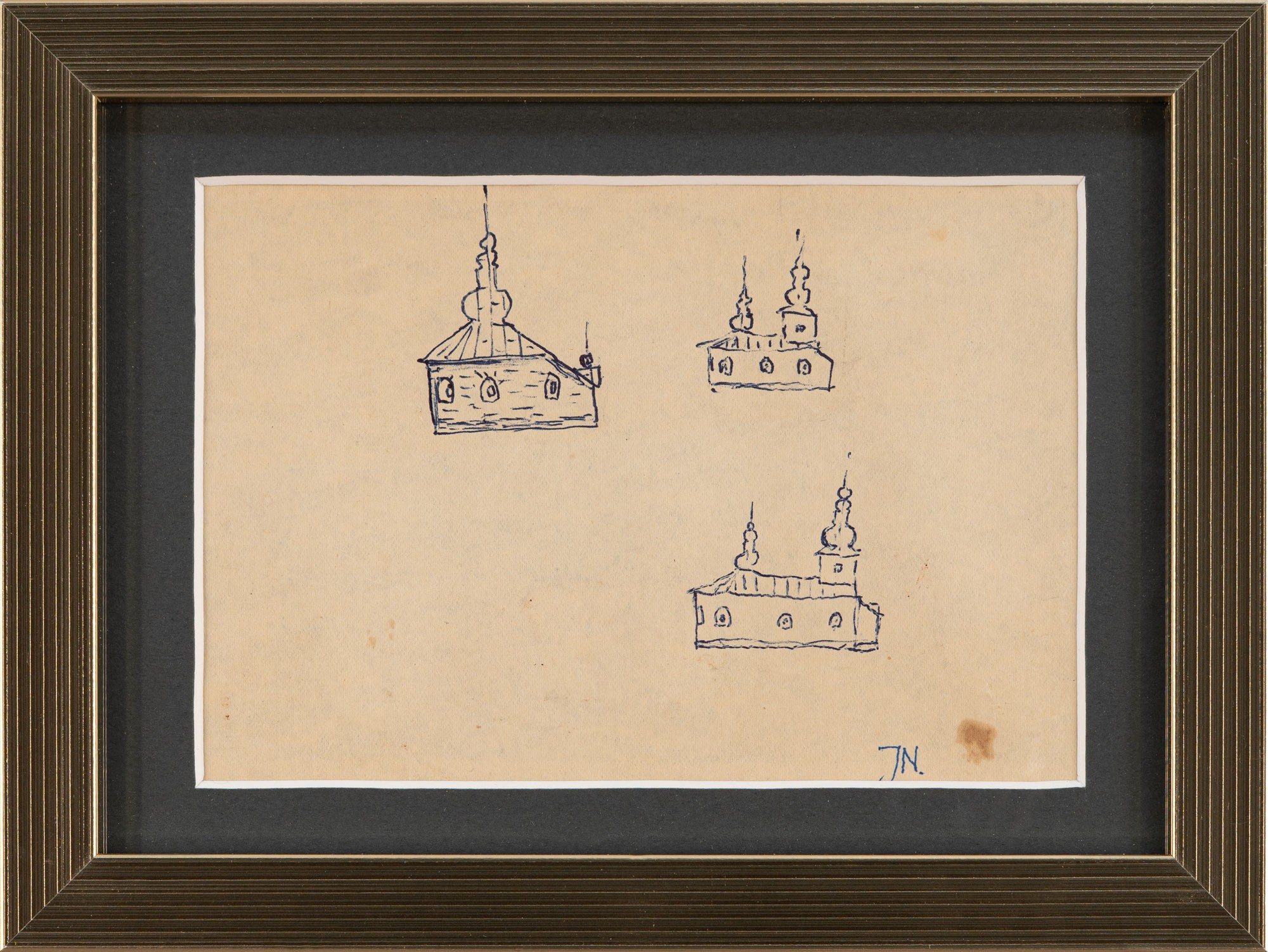 długopis, papier; 10 x 15 cm;sygn. p. d.: JN.na odwrocie szkic