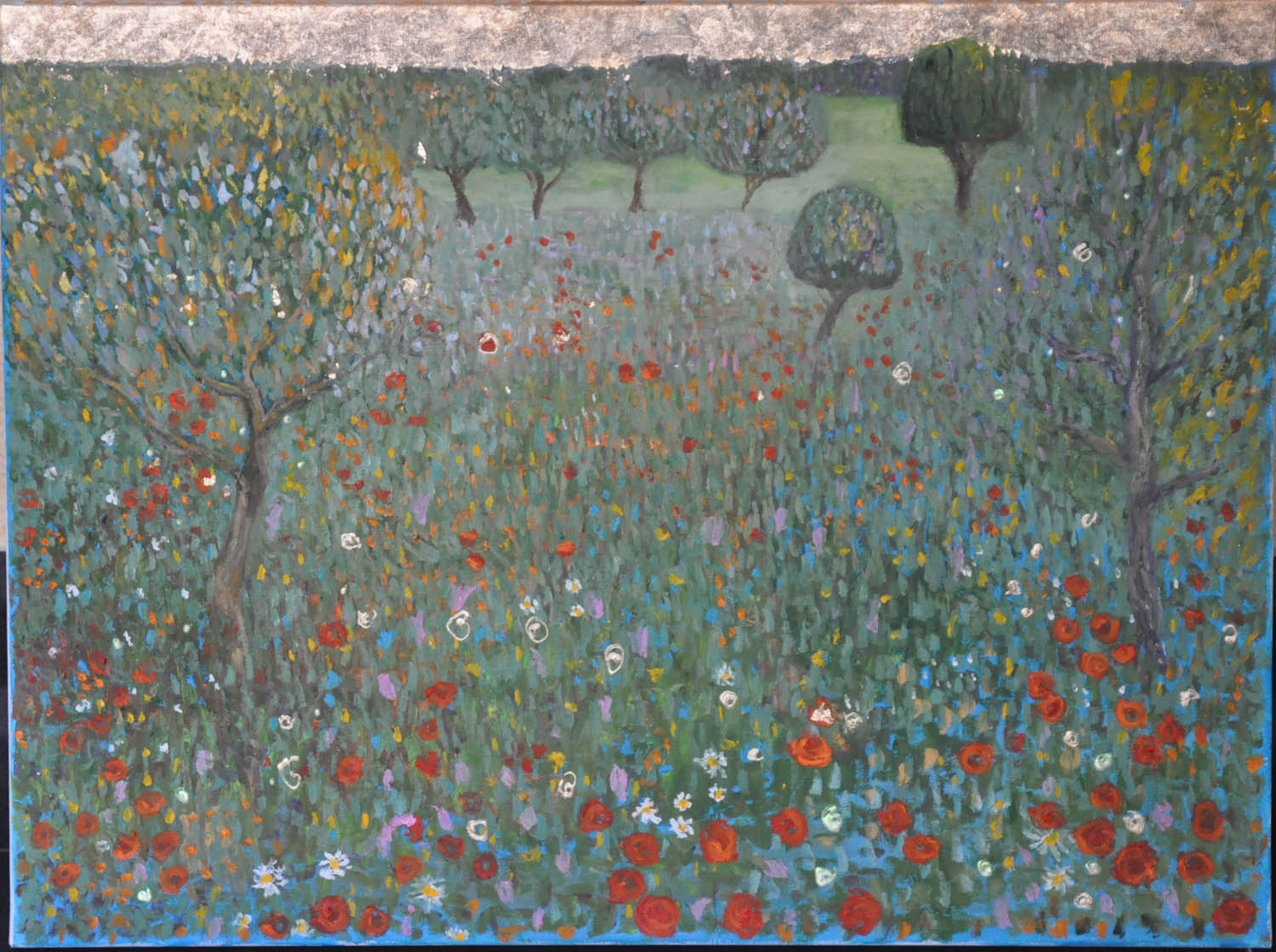 olej/ płótno + złoto, 58,5 x 78 cm, sygn. na odwrocie