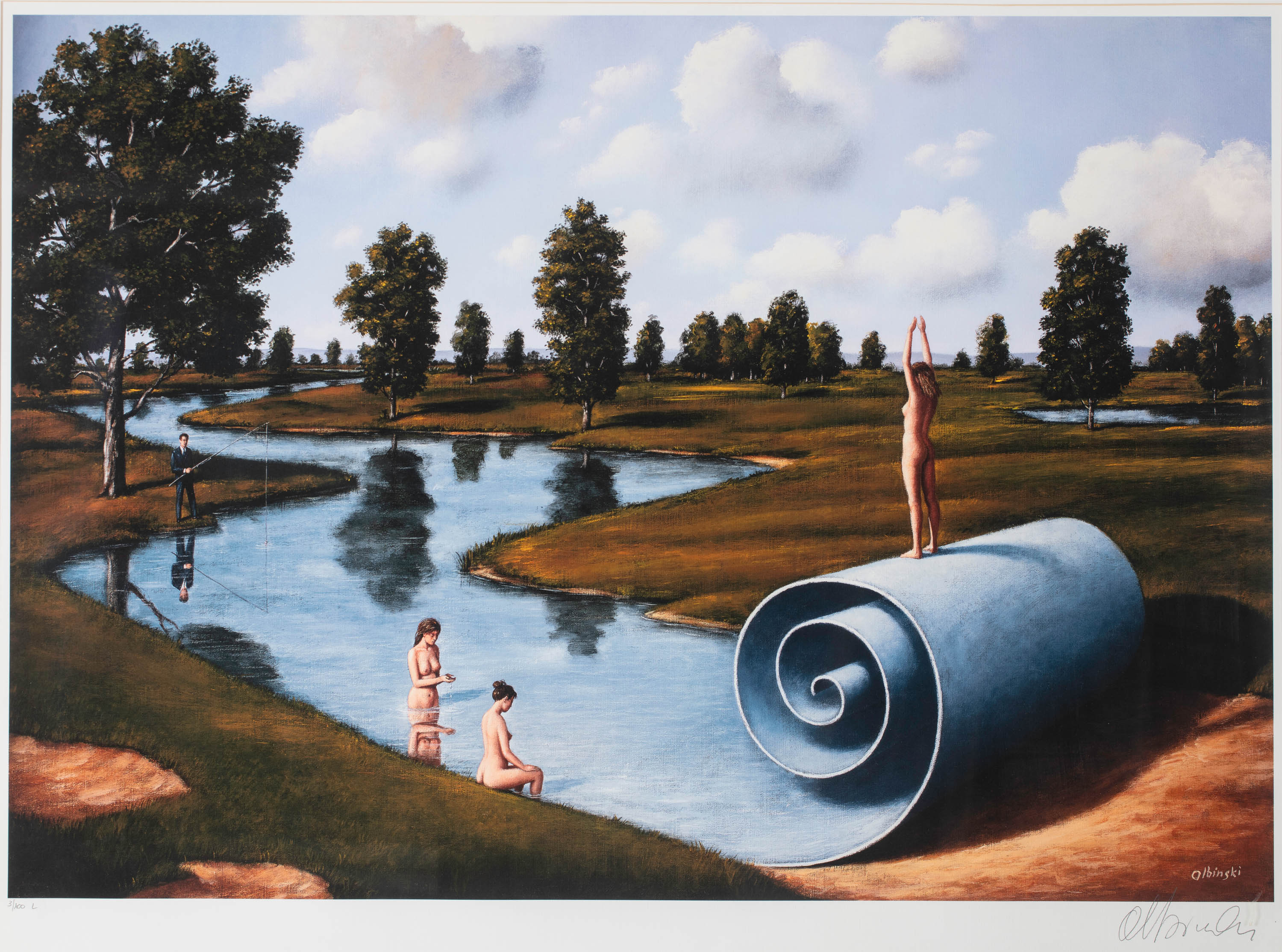 inkografia, papier, 60,5 × 86 cm (kompozycja), 66,5 × 88 cm w świetle passe-partoutsygn. na płycie. p. d.: „Olbiński”sygn. ołówkiem p. d.: „Olbiński” oraz l. d.: „3/100L”