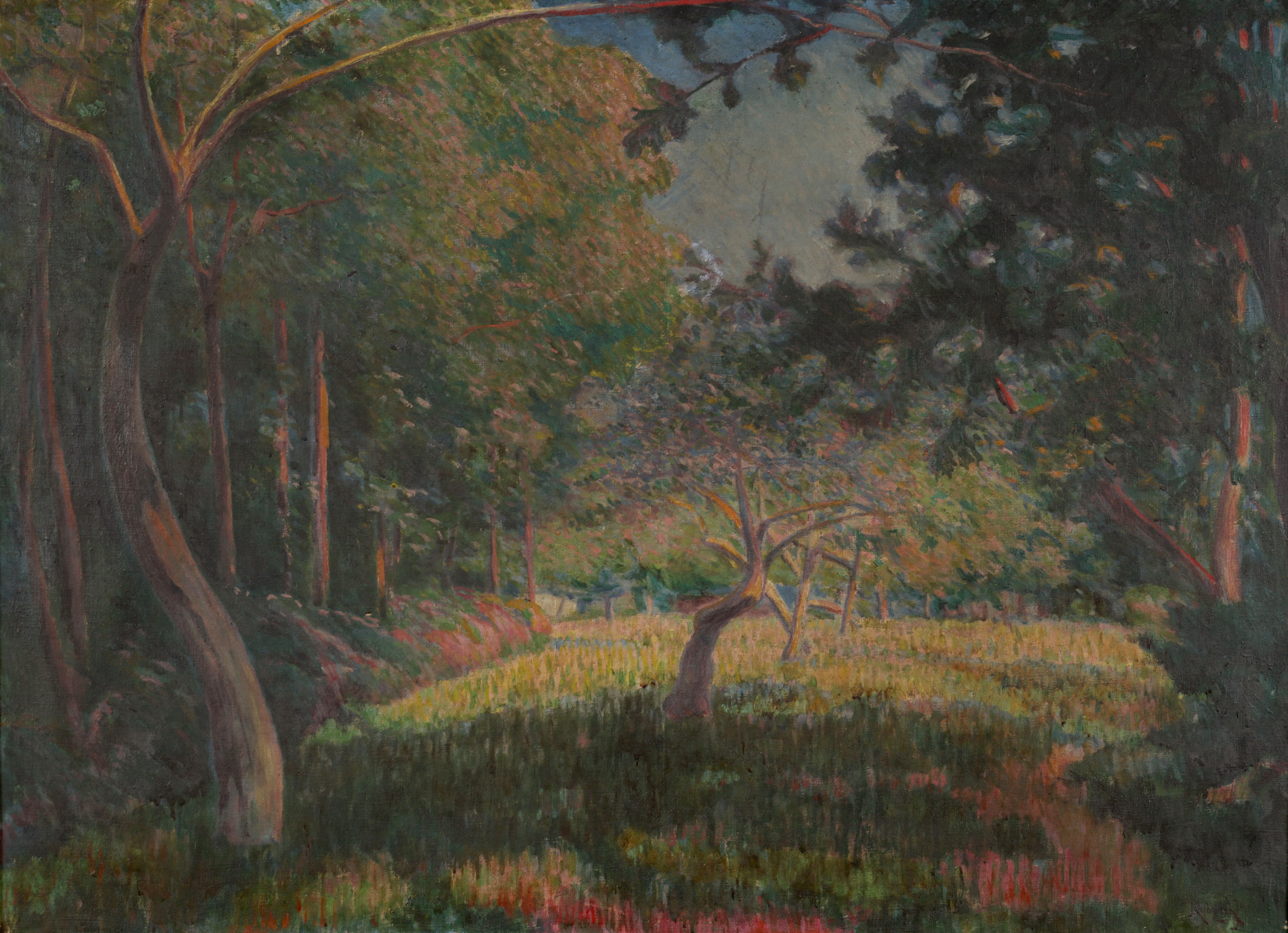 Na blejtramie częściowo czytelna metka z opisem obrazu oraz pieczęć: "THE PARIS AMERICAN ART Co | 125, BOULd du MONTPARNASSE | 2, Rue Bonaparte, 2 | PARIS"