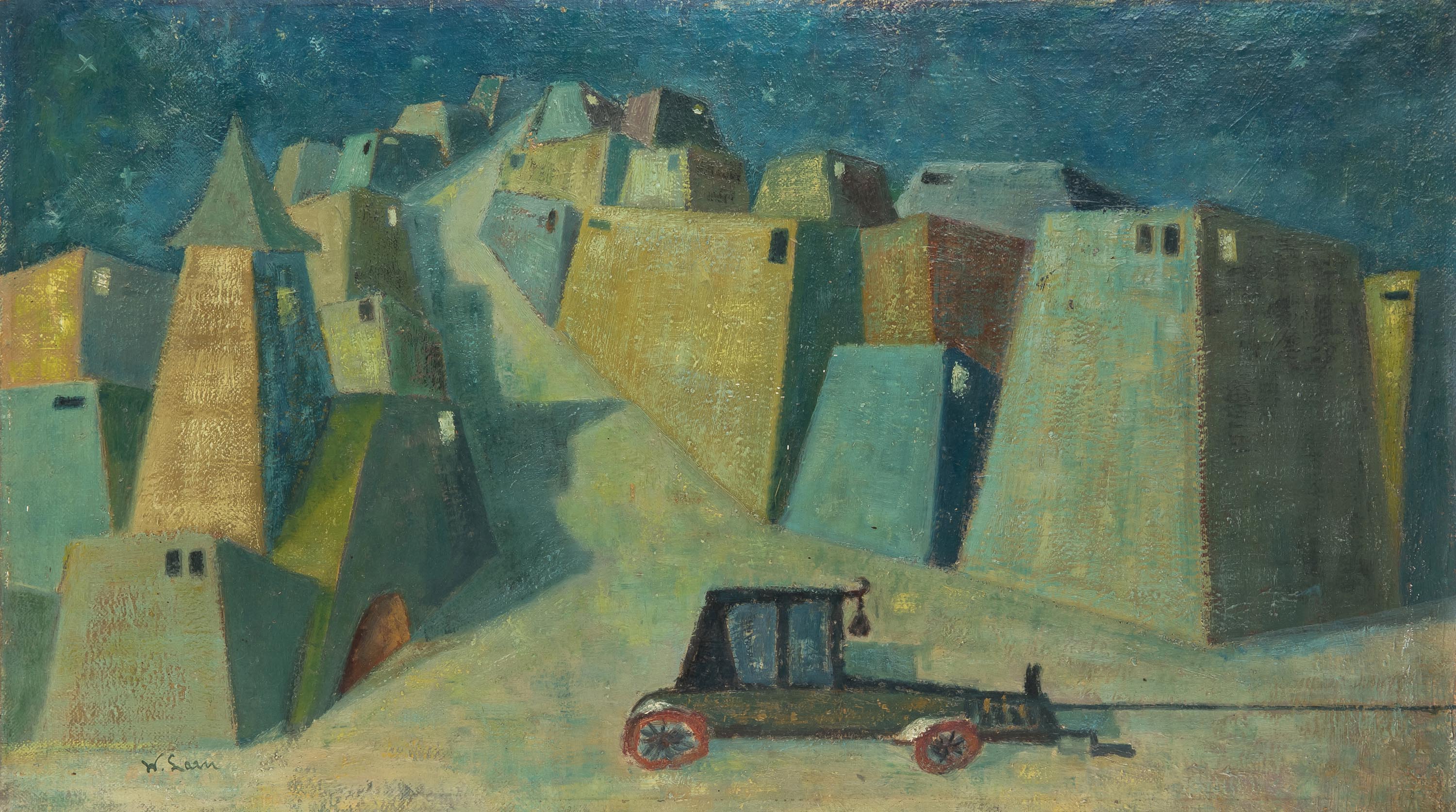 olej, płótno naklejone na tekturę, 38 x 68 cm,sygn. l.d.: W.Lamilustracja do "Króla Maciusia I" Janusza Korczaka, wydanego w 1923 r.