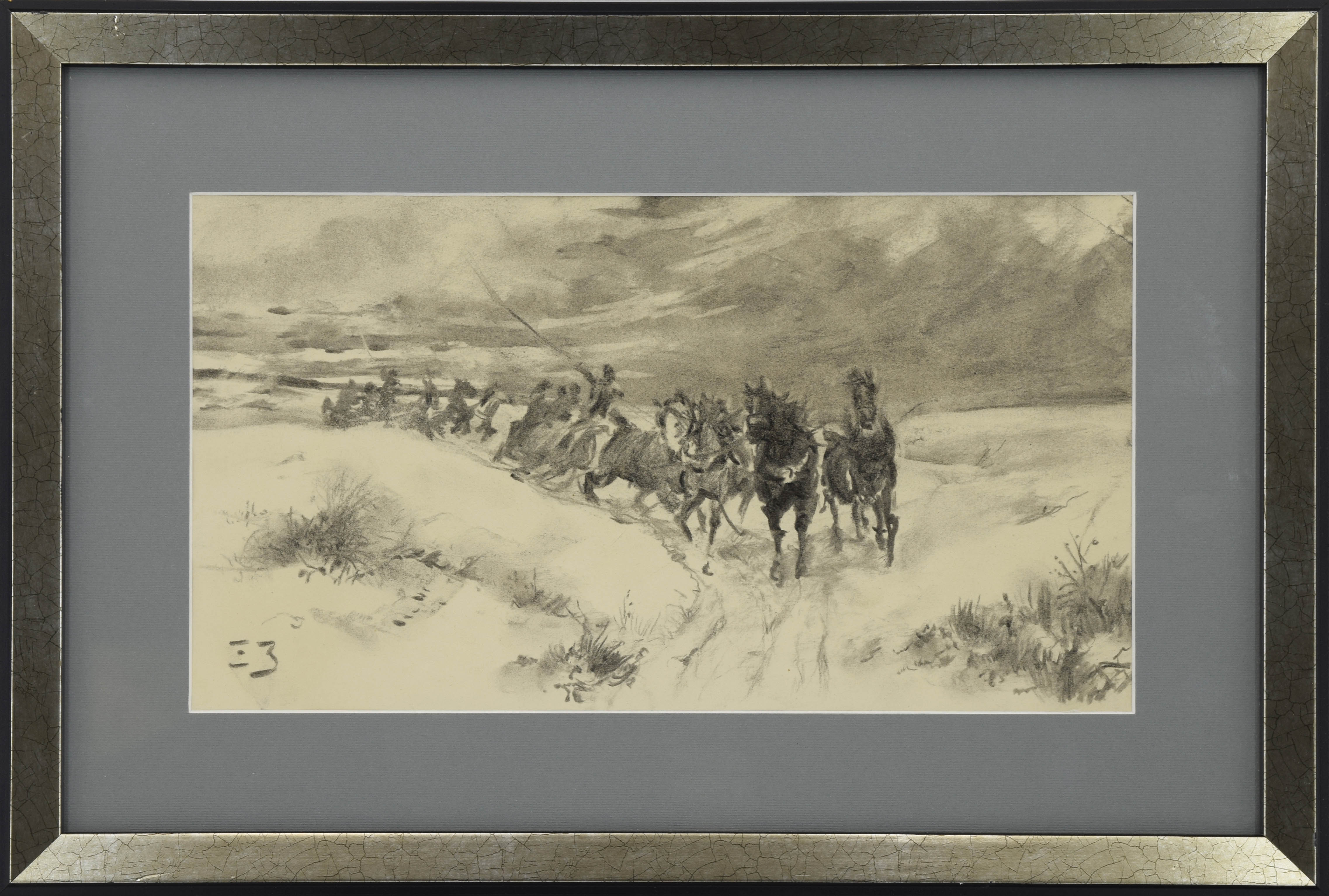 węgiel, papier; 17 x 31 cm (w świetle oprawy);sygn. l. d.: ZJ