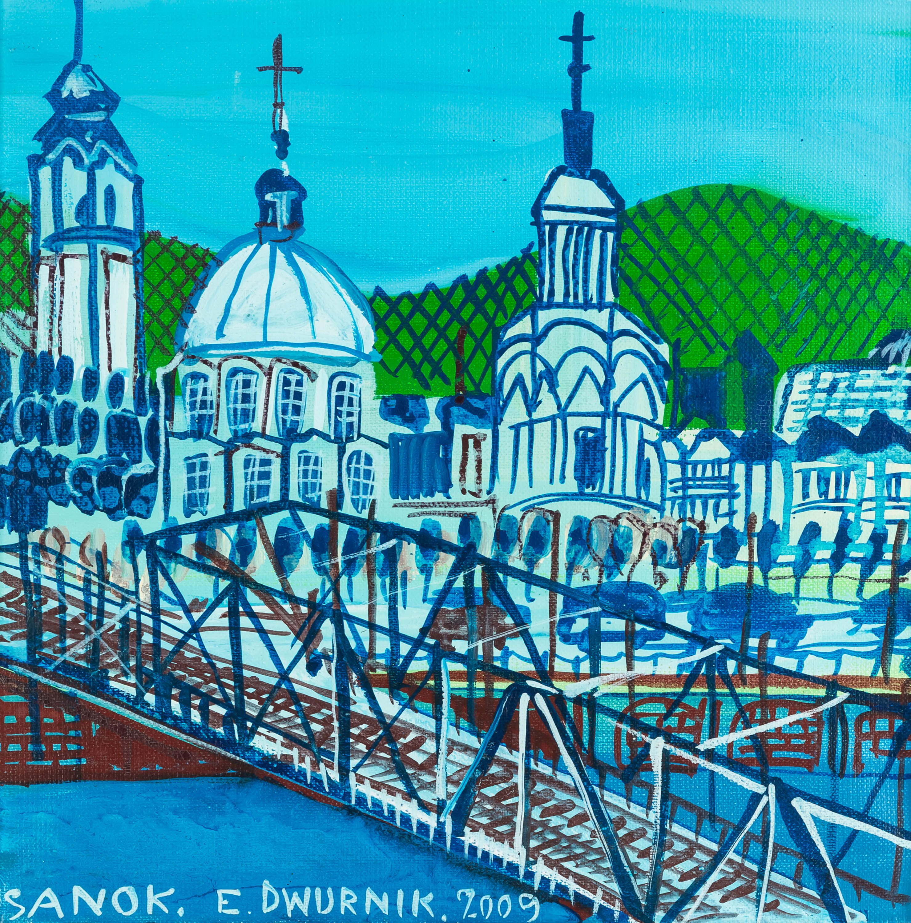olej, płótno, 32 x 32 cm w świetle passe-partout, 58 x 58 cm w oprawie,opisany, sygn. i dat. l.d.: SANOK, E. DWURNIK 2009