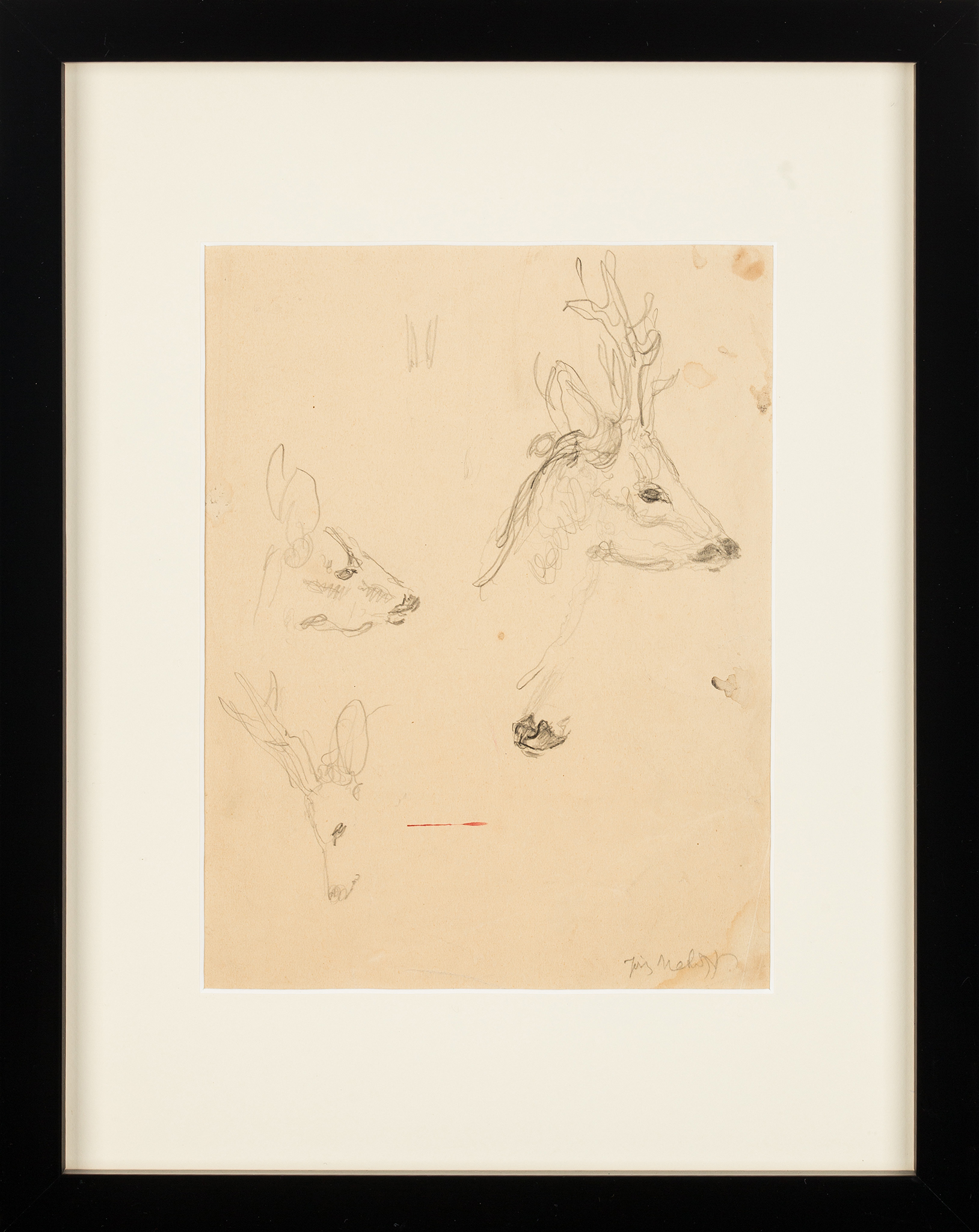 W szkicownikach Józefa Mehoffera znalazło się kilka rysunków przedstawiających studia sarny (lub młodego jelenia) - być może były to rysunki przygotowawcze do kompozycji przedstawiającej wizję św. Huberta, czyli obrazu podarowanego do kościoła w Lubieniu koło Piotrkowa Trybunalskiego.