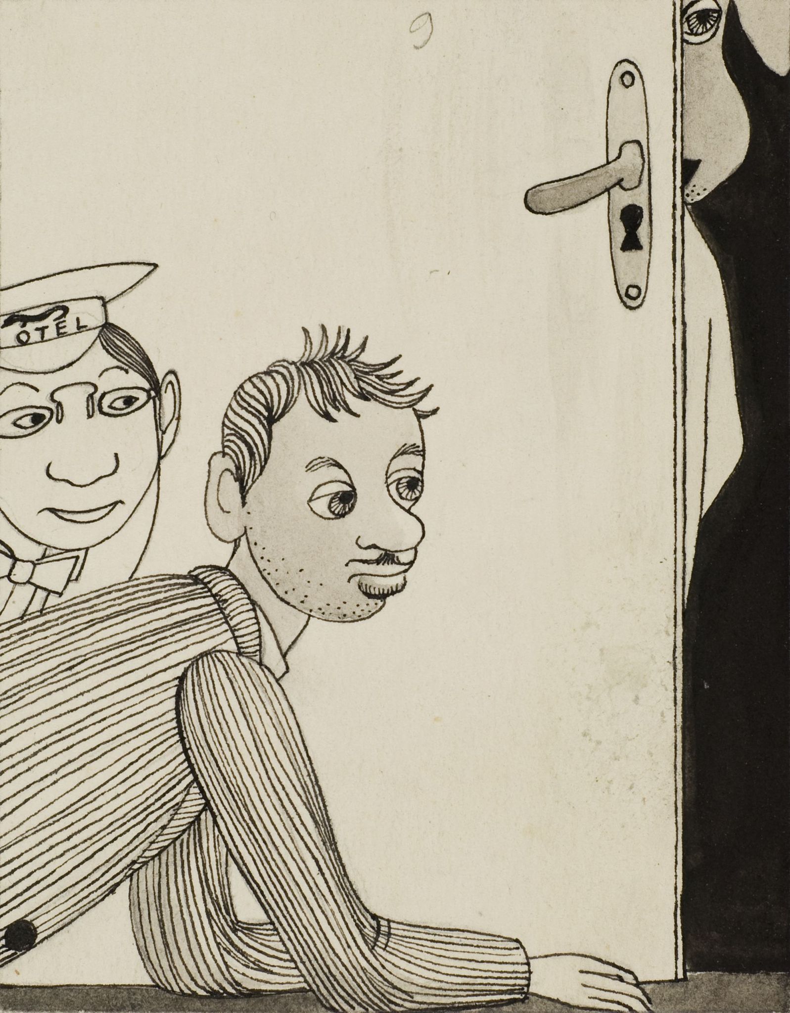 na odwrociu pieczątka cenzora dopuszczająca do publikacji z 1960 roku. Proj. ilustracji do "Ferdynand Wspaniały" L. J. Kern.