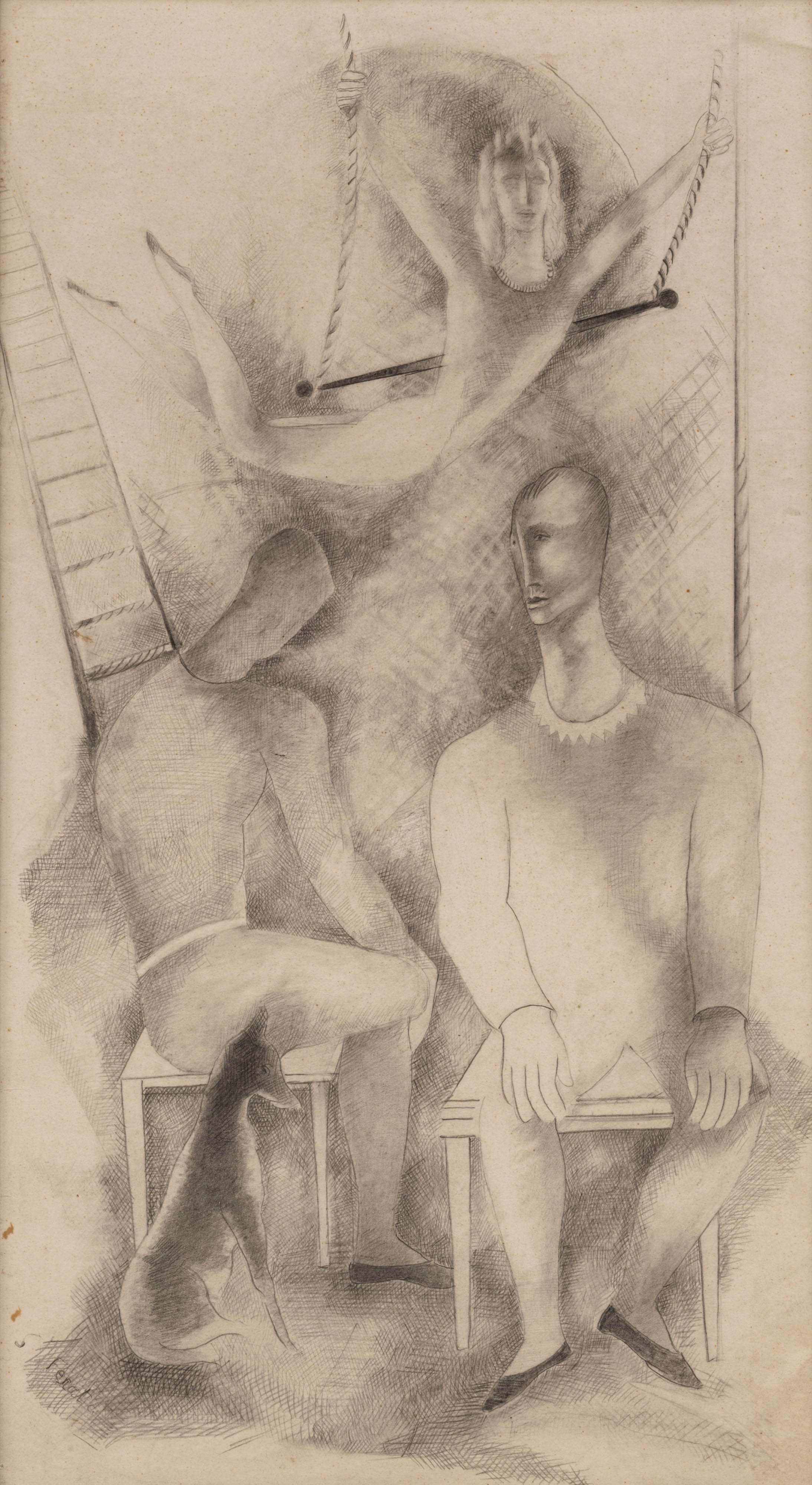 ołówek na papierze naklejony na tekturę, 49 x 27,5 cm,