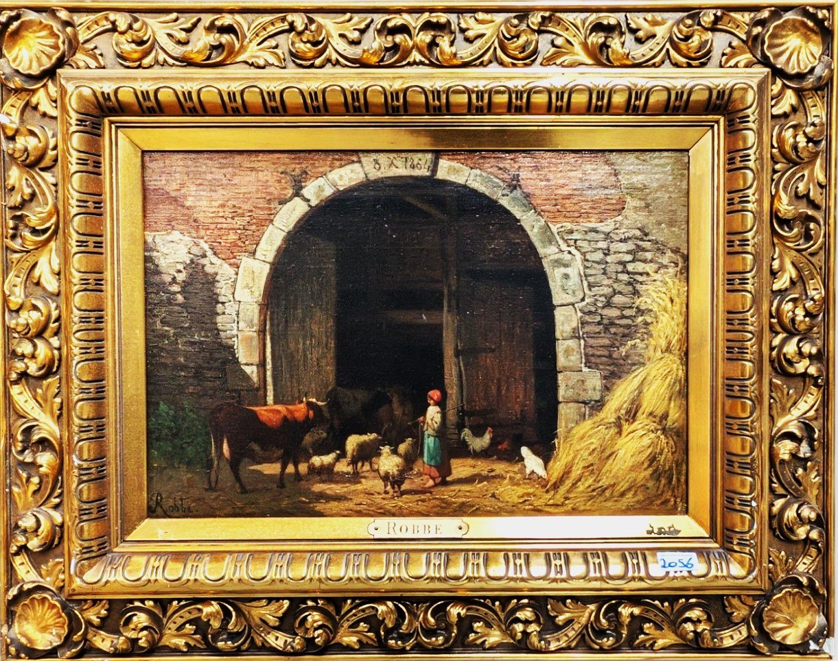 Louis Robbe był belgijskim artystą, który urodził się w Kortrijk w 1806 roku i zmarł w Brukseli w 1887 roku. Był malarzem zwierząt i rytownikiem. Brat Henriego Robbe. Kształcił się w Akademii w Kortrijk i był uczniem J.B. De Jonghe (lata 20. XX wieku). Również uczeń Verboeckhovena. Uzyskał doktorat z prawa na Uniwersytecie w Gandawie w 1830 roku i przejął gabinet ojca w 1935 roku. Debiutował około 1833-1835 roku malarstwem. Osiedlił się w Brukseli w 1840 roku i został urzędnikiem w Ministerstwie Finansów. Preferował sceny z bydłem, owcami i kozami. Realistyczny design. Później skupił się również na pejzażu. Wywarł wielki wpływ na młodsze pokolenie malarzy zwierząt. Z prasy: „Pejzaż był dla Louisa Robbe nie „dekoracją”, ale przestrzenią, w której poruszały się jego postacie. Preferował krowy, które przedstawiał anatomicznie poprawne i bez ozdób. Przedstawione postacie, zazwyczaj pasterze, pasterze i pasterki, odgrywają w krajobrazie rolę podrzędną. Dzieła w muzeach w Brukseli, Antwerpii, Gandawie, Brugii, Kortrijk, Liège i Tournai. Wspomniane w Leksykonie Zachodnioflandyjskich Artystów Plastyków.