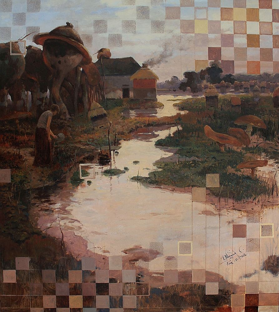 sygn. dat. p.d. D.Woźniak / Łódź 27.IX.2014sygn. dat. opisany na odwrociu D.Woźniak / 2014 / "Sekretne miejsce" 27.IXolej, płótno90 x 80 cm